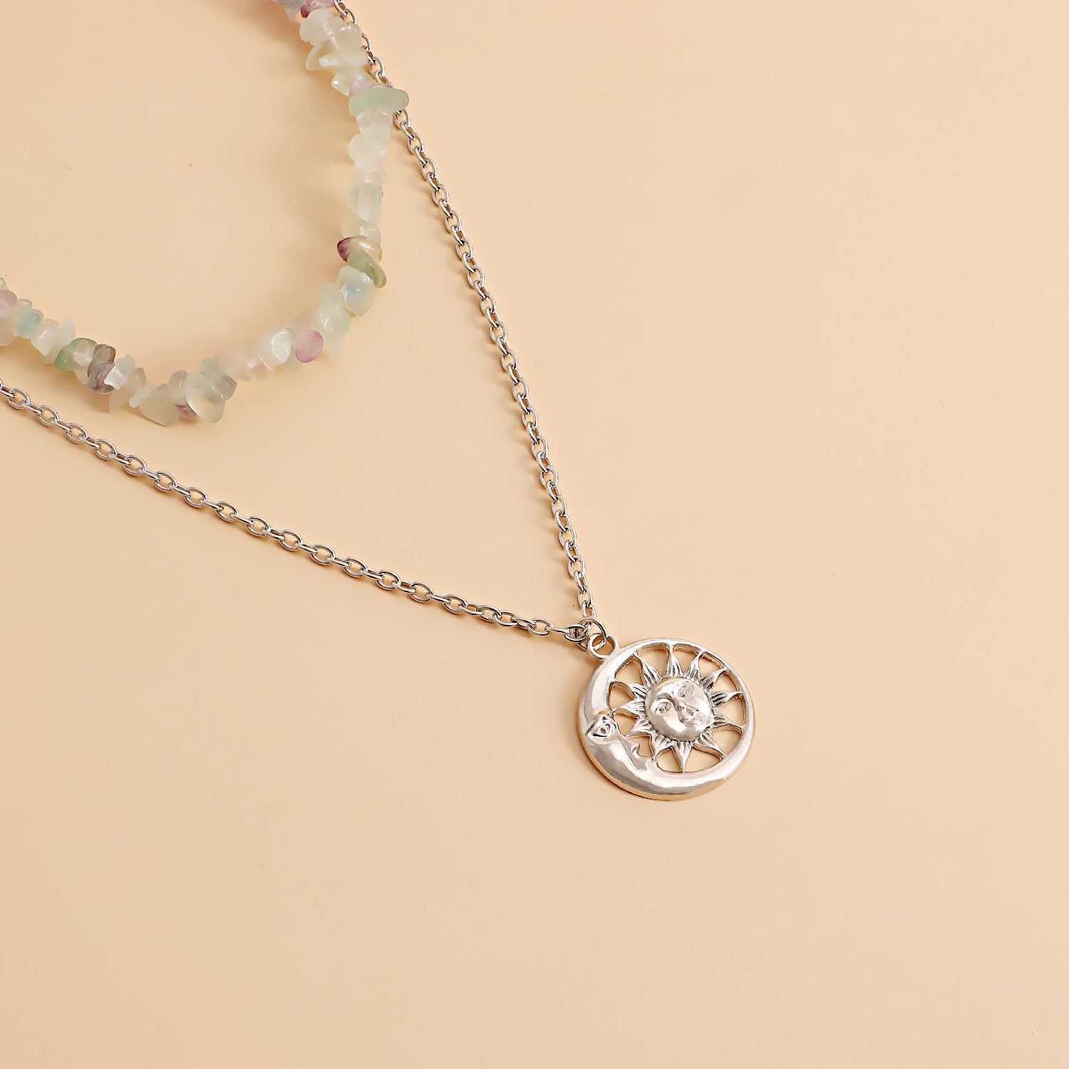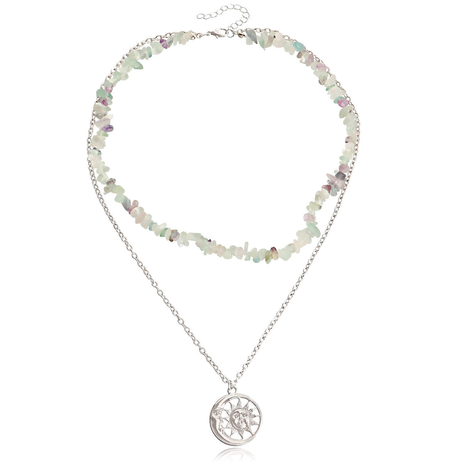 Jewelry double-layer simple natural green Dongling gravel pendant necklace female niche design necklace hot girl