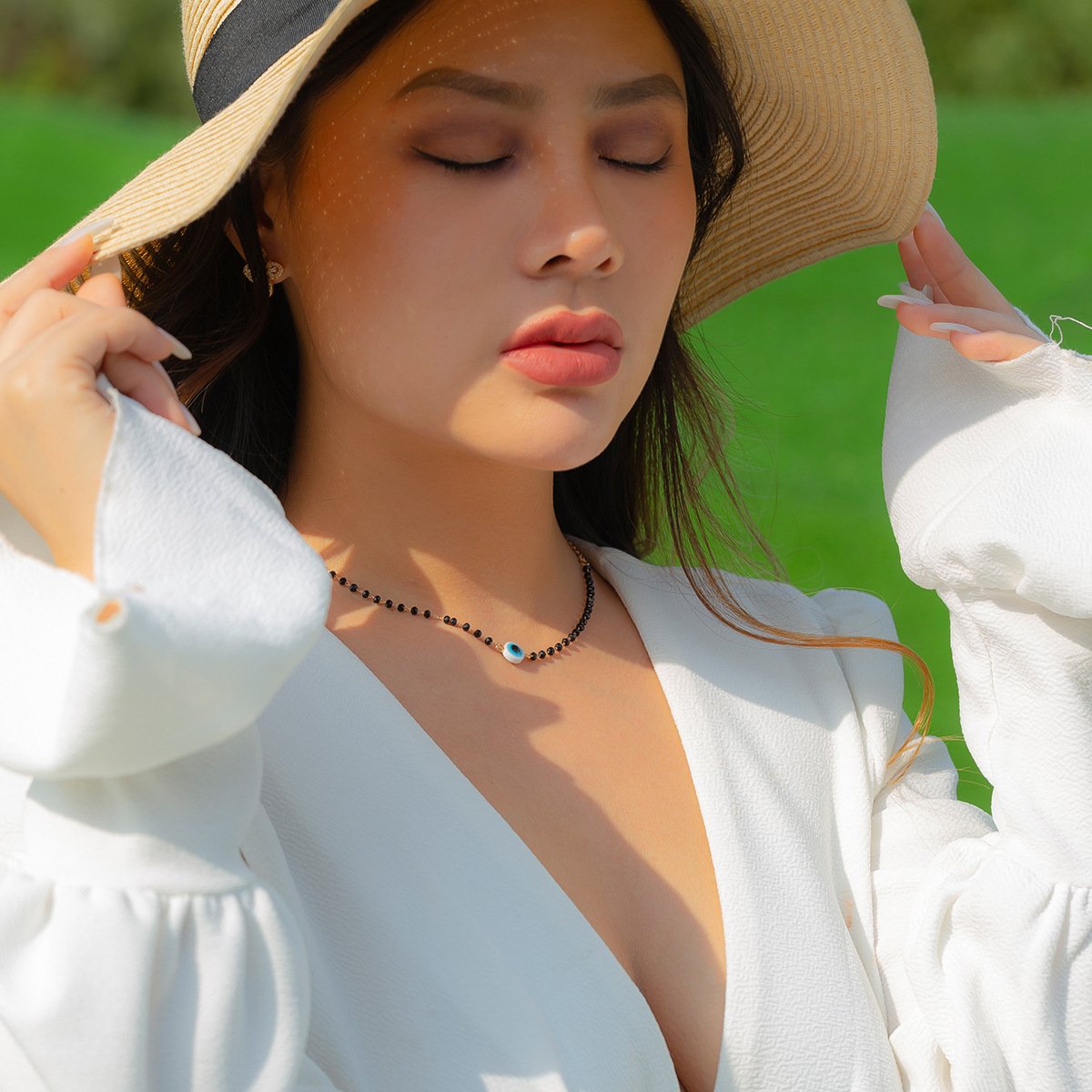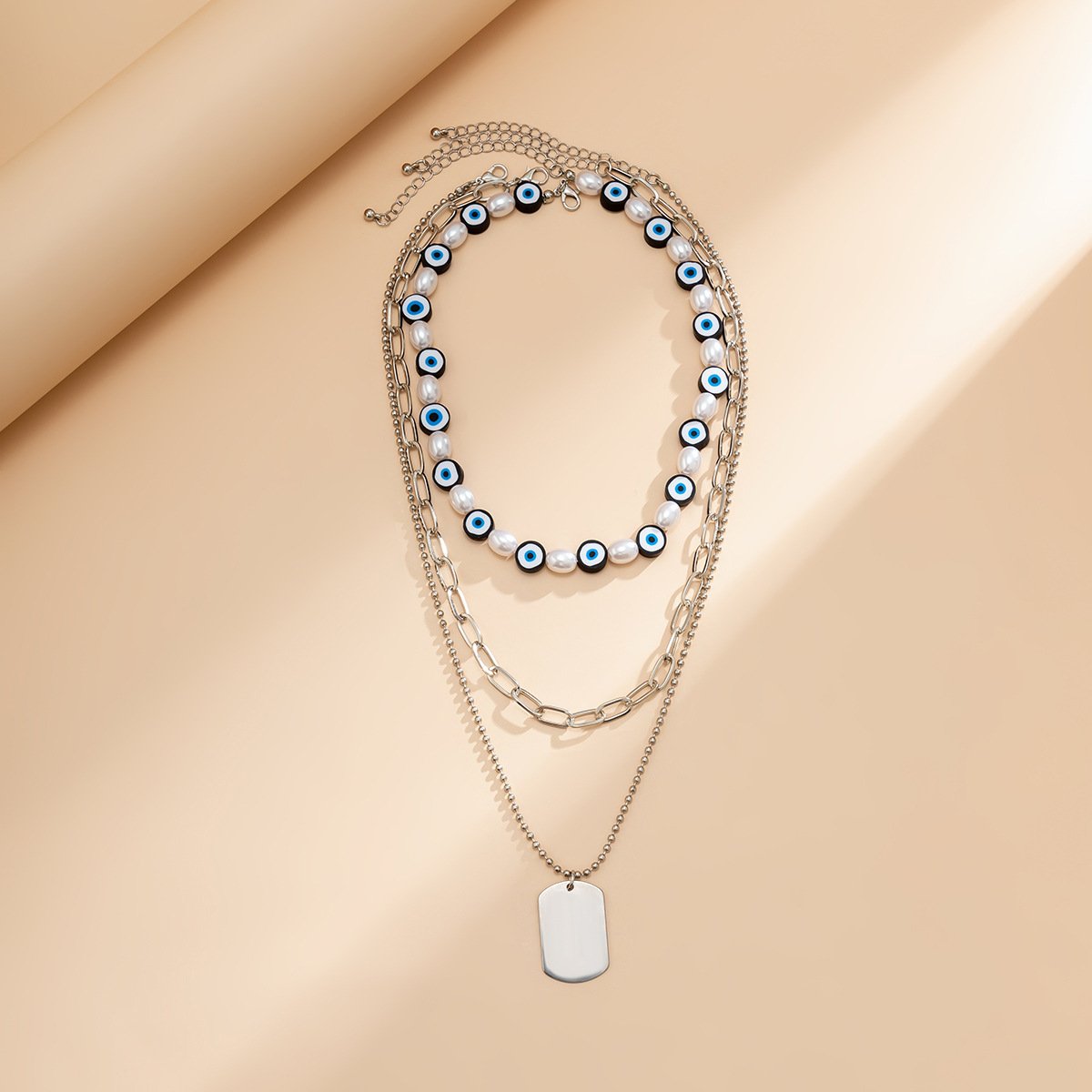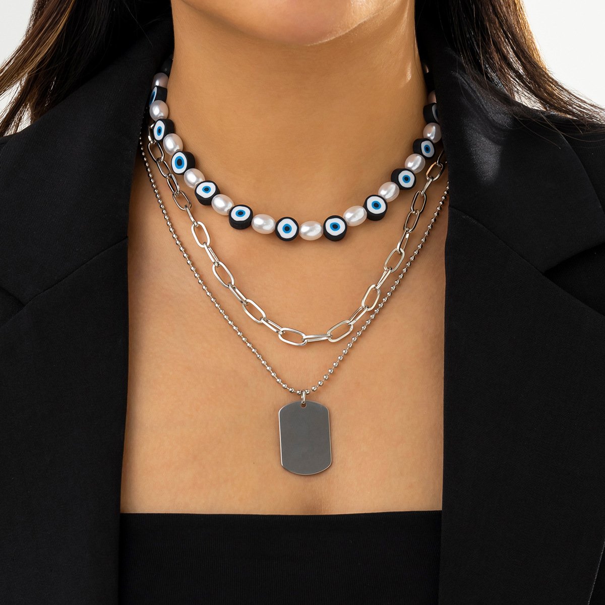 Jewelry Ethnic Beaded Chain Devil Eyes Pendant Punk Hip Hop Metal Tag Necklace