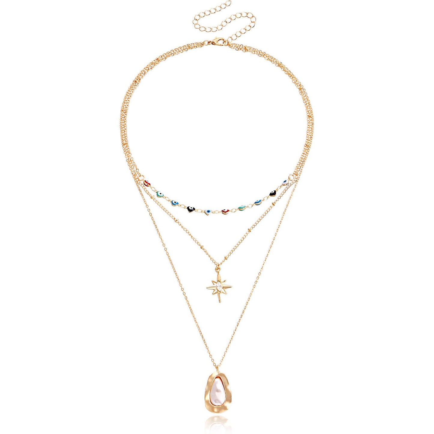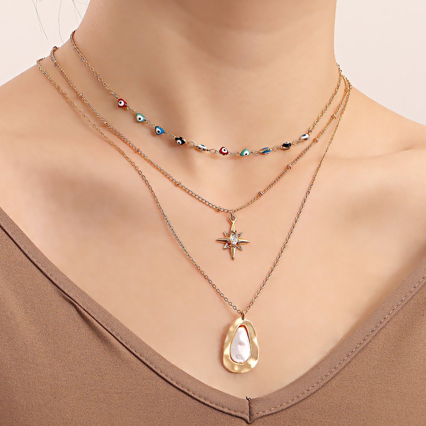 Jewelry fashion love devil's eye hexagram special-shaped pearl necklace female ins niche design