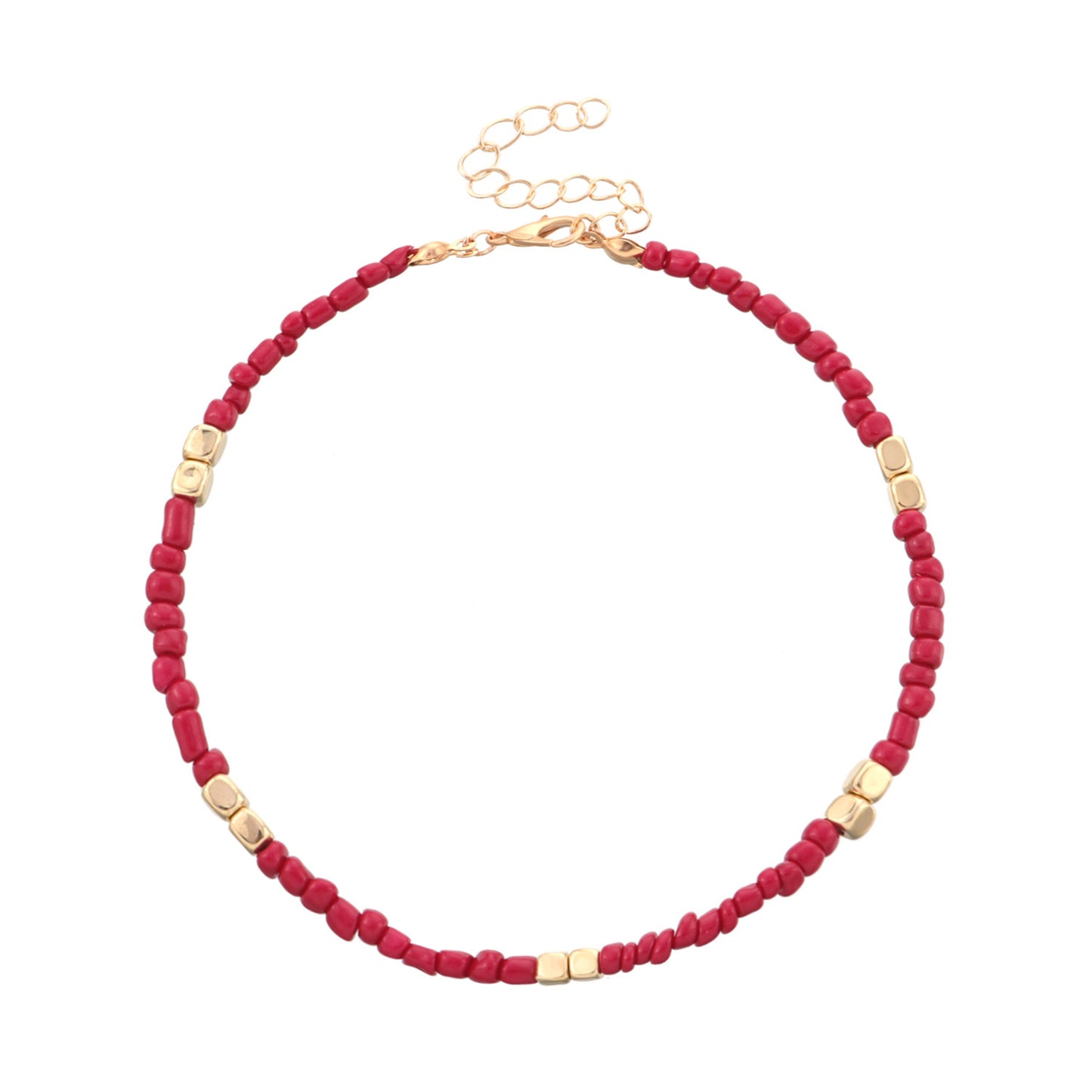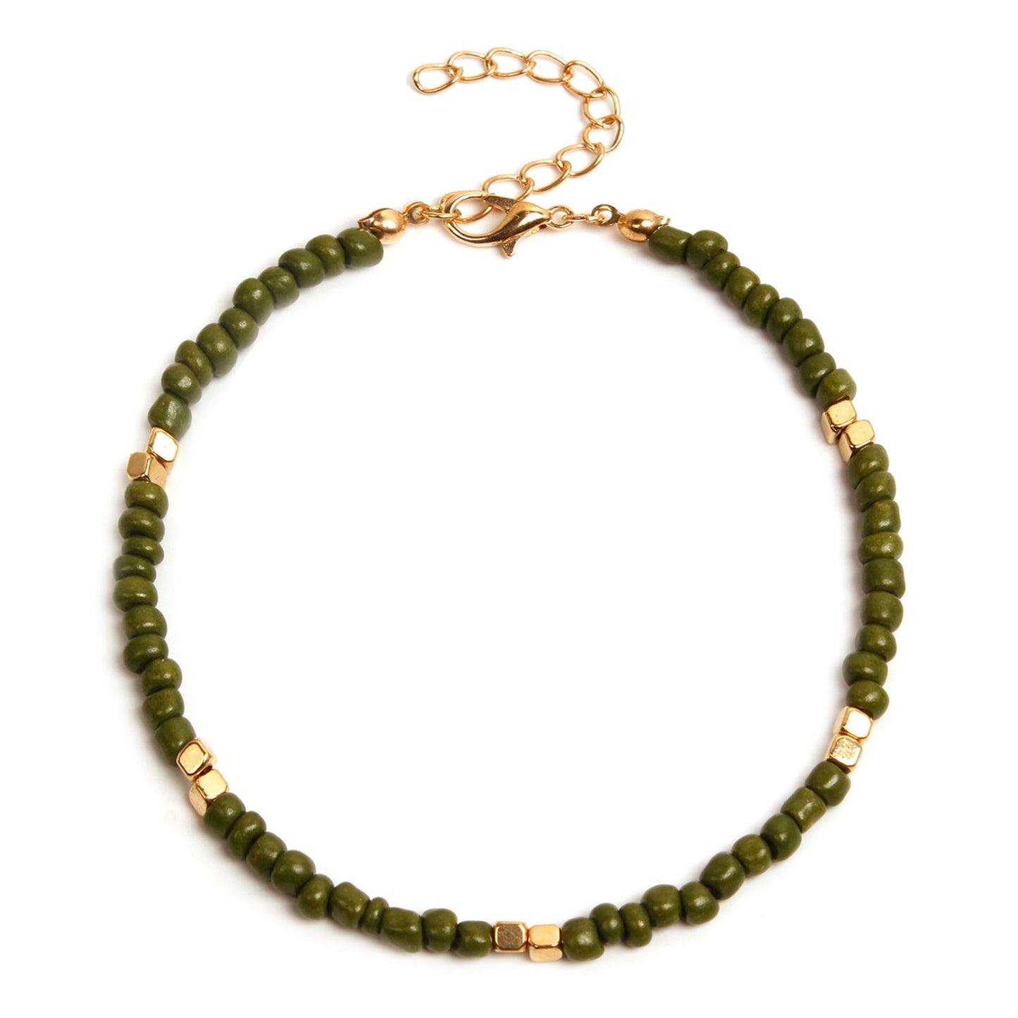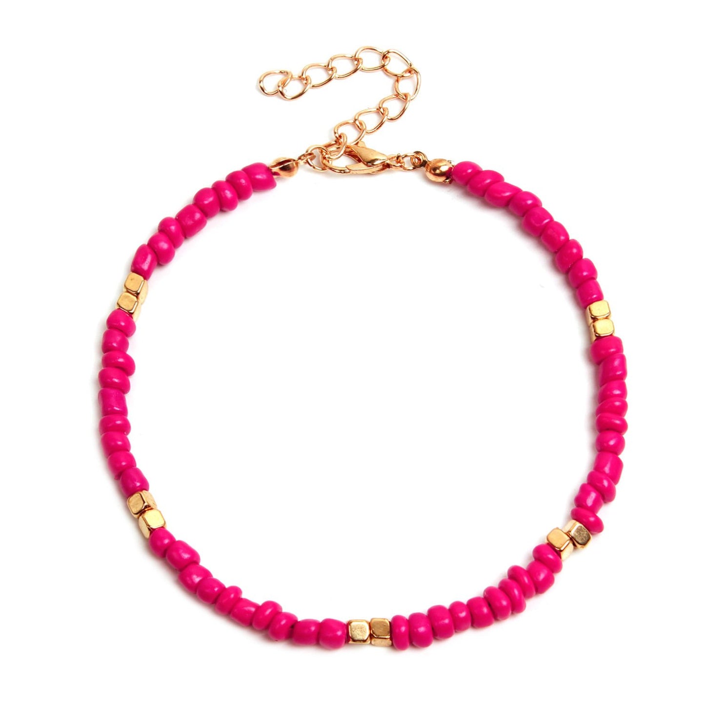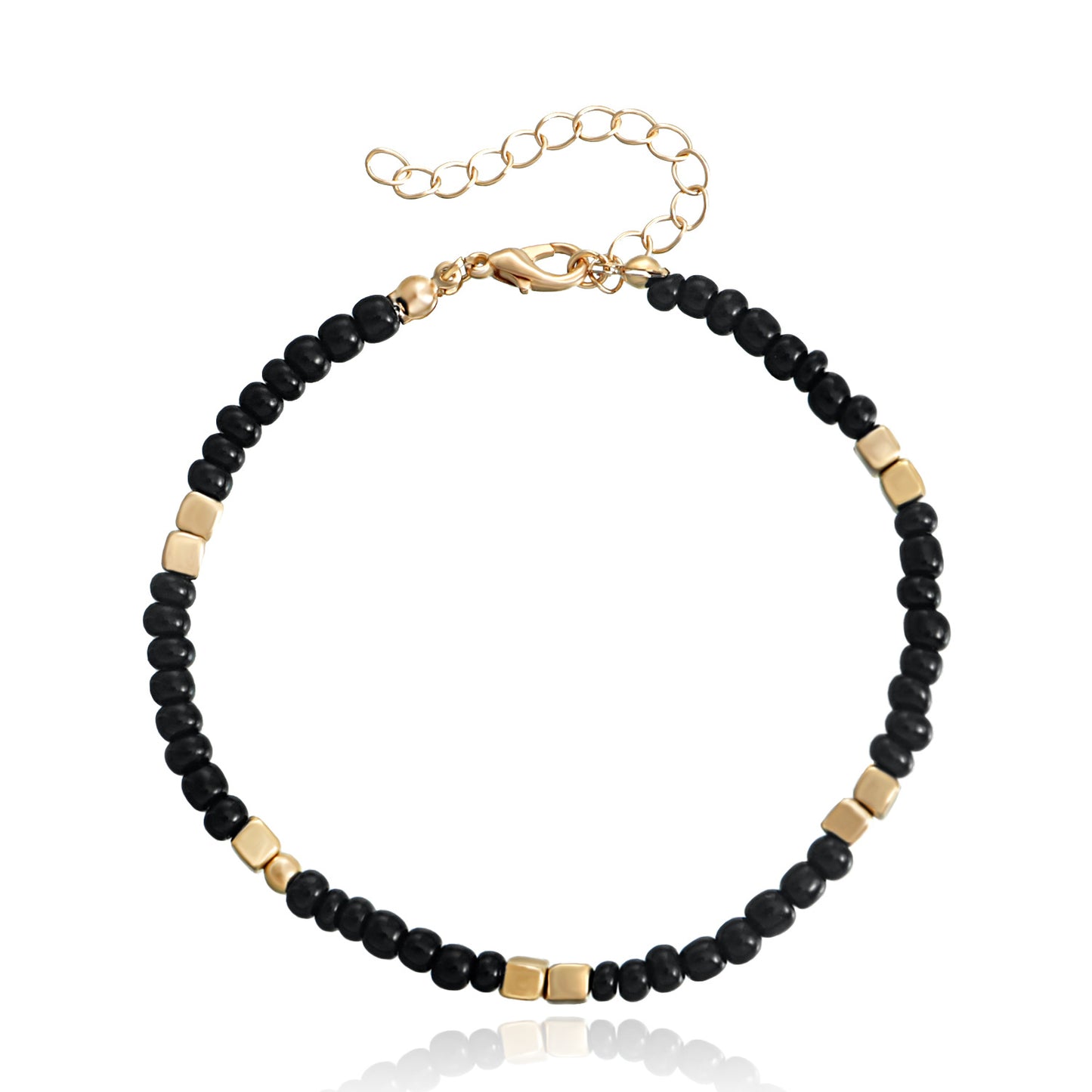 Jewelry gold rice beads beach anklet women's fashion hand-threaded square alloy foot ornaments