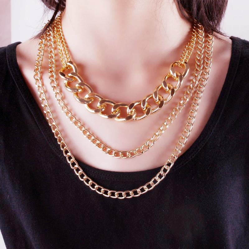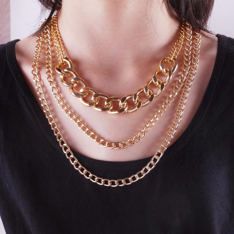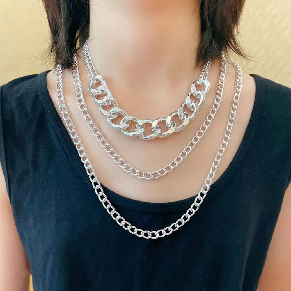 Jewelry Hip Hop Retro Thick Cross Chain Necklace Female Exaggerated Trendy Cool Geometric Set Necklace