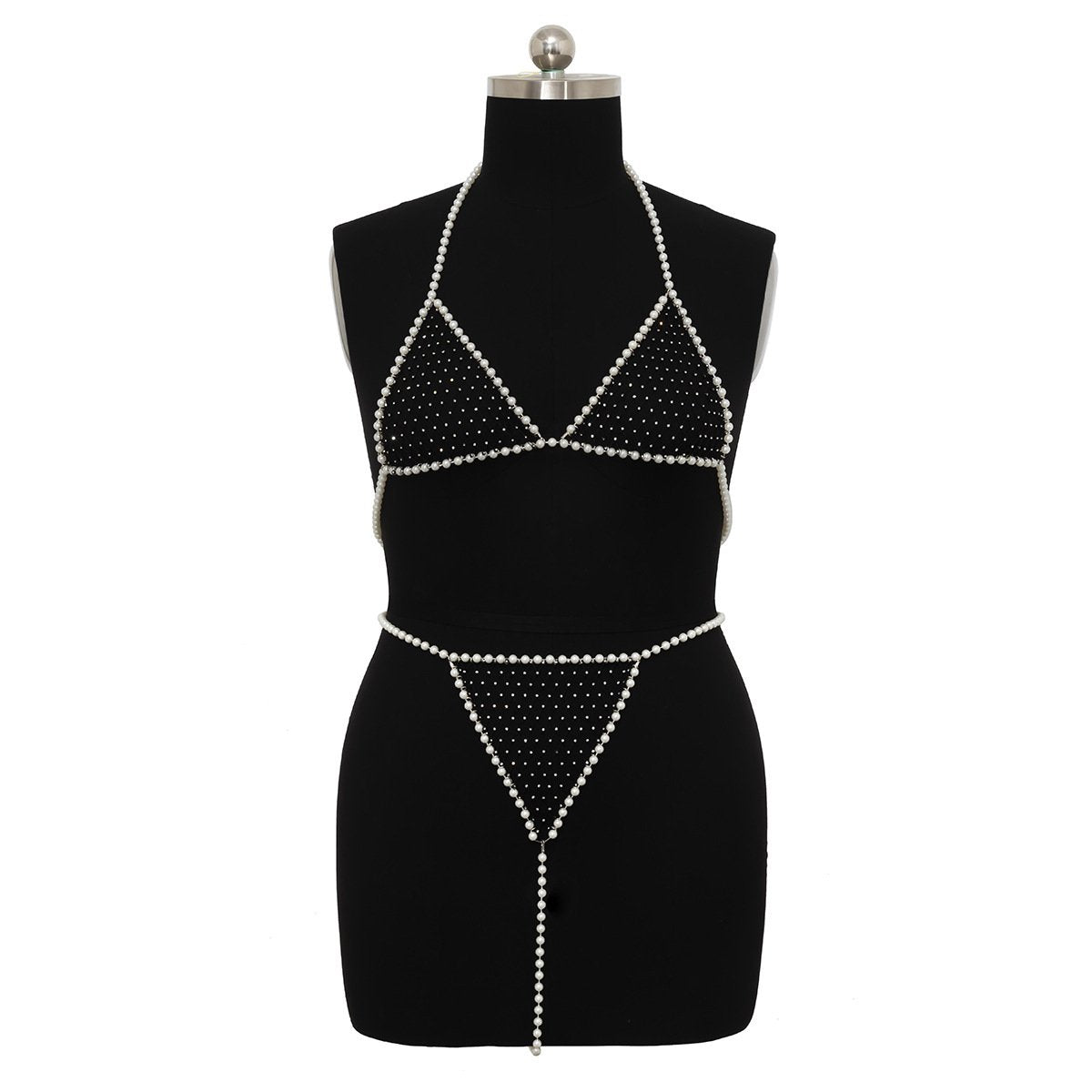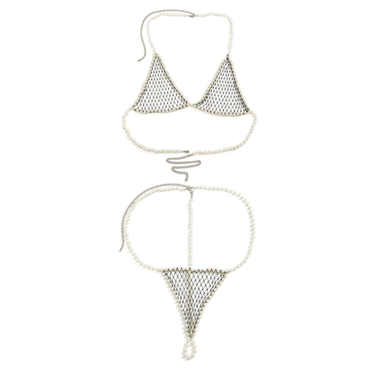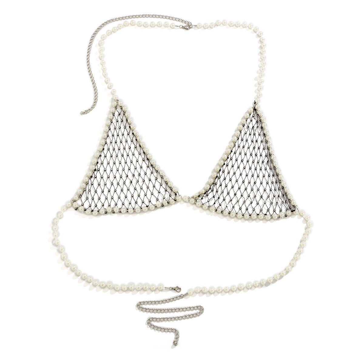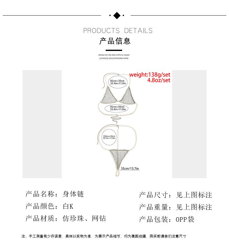 Jewelry Imitation Pearl Mesh Drill Sexy Bikini Chest Chain Beach Beaded Hollow Body Chain Female