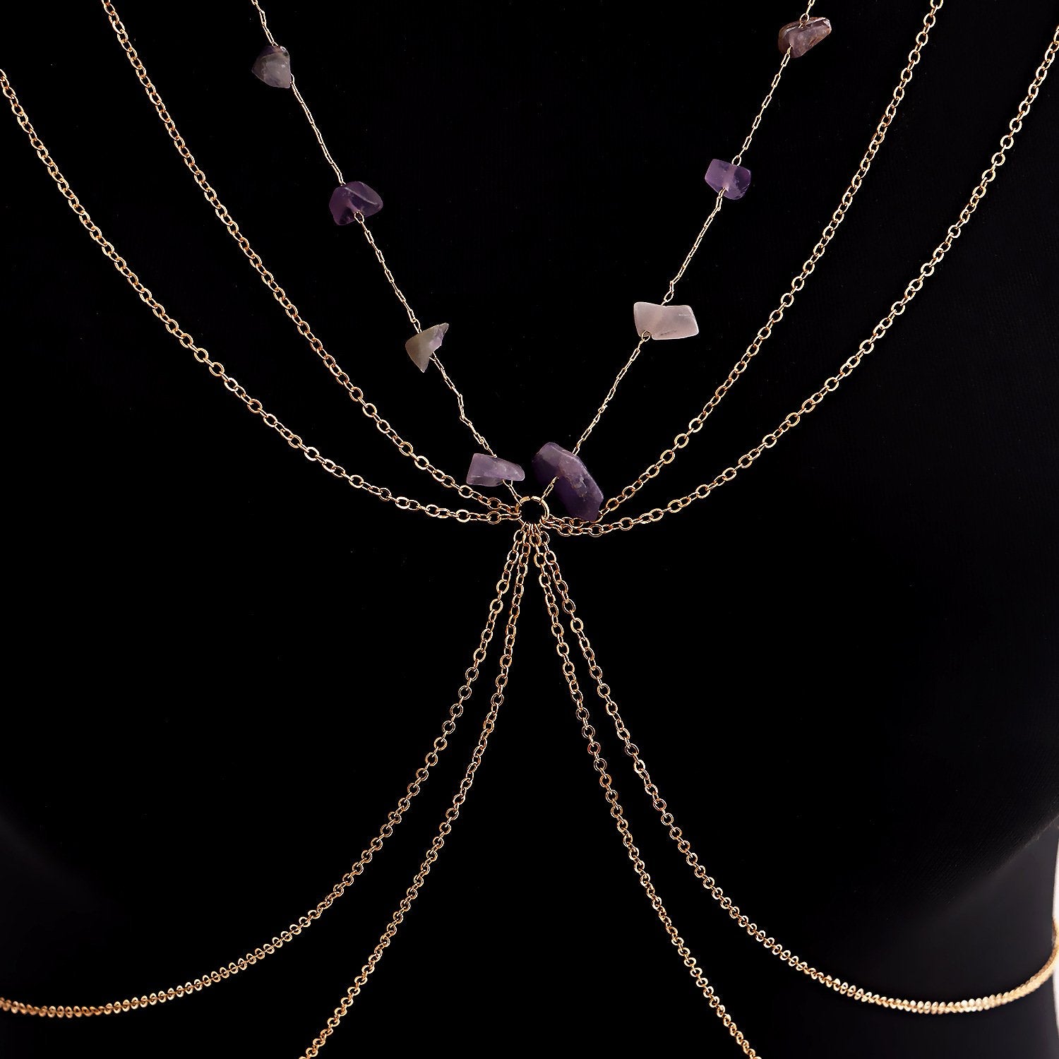 Jewelry ins exaggerated turquoise tassel chain summer body chain beach sexy metal hanging neck chest