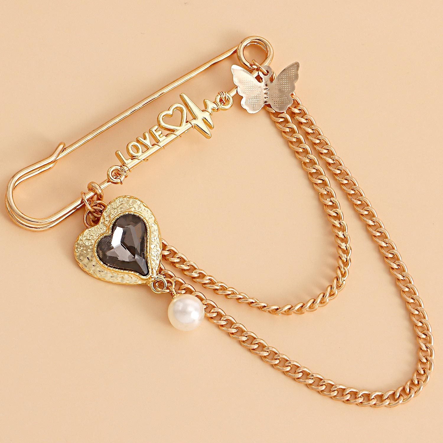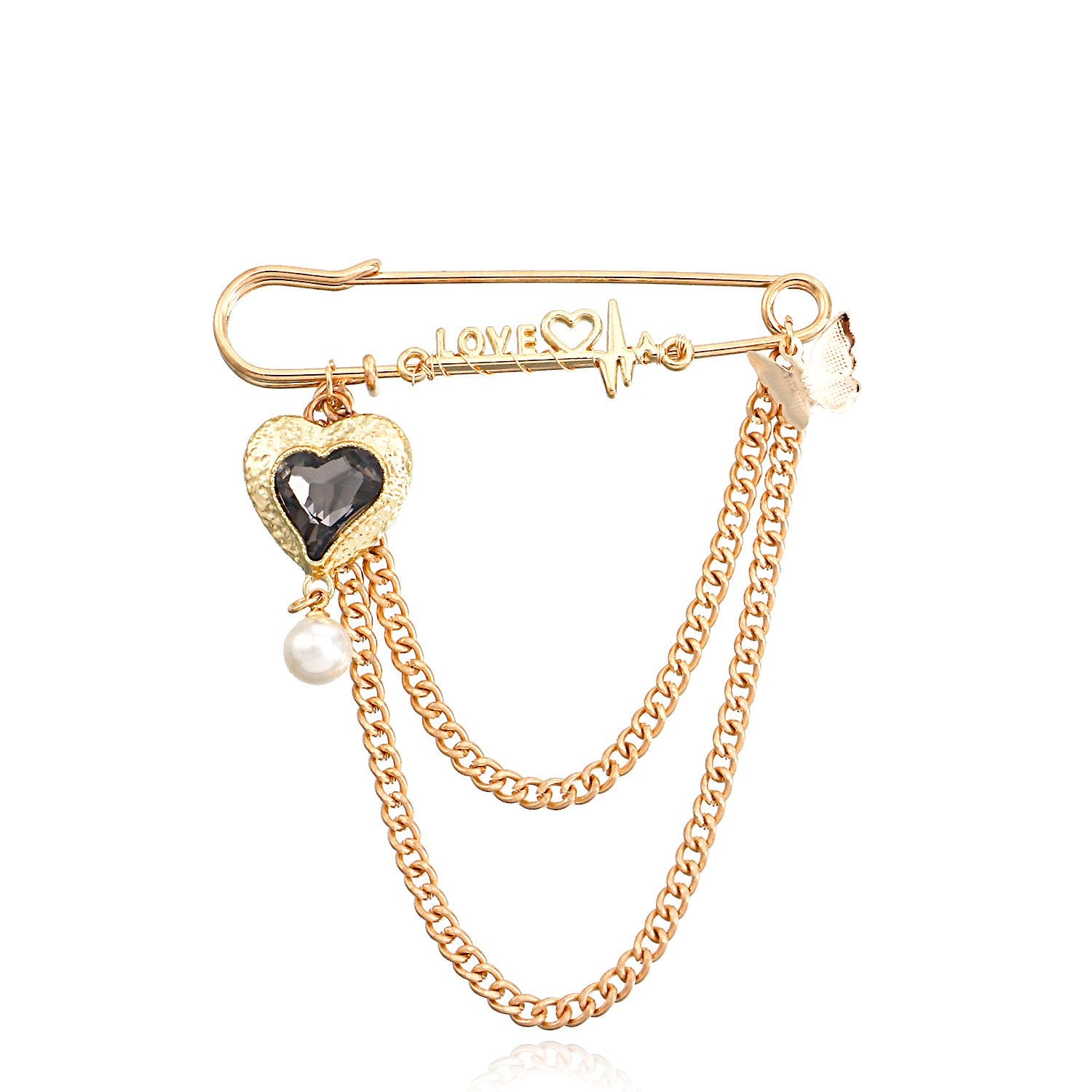 Jewelry ins long tassel black zircon love pendant brooch accessories women's clothing pendant