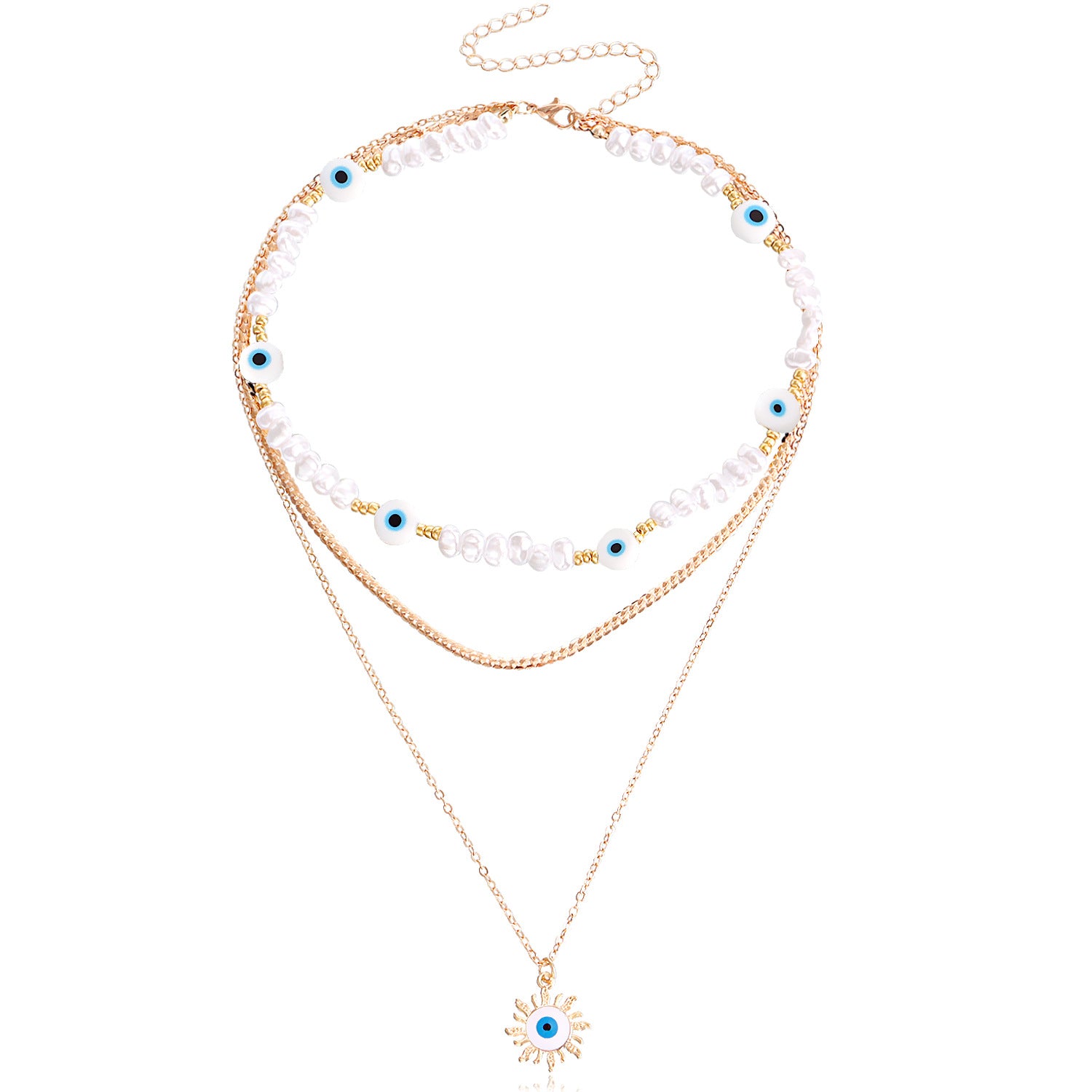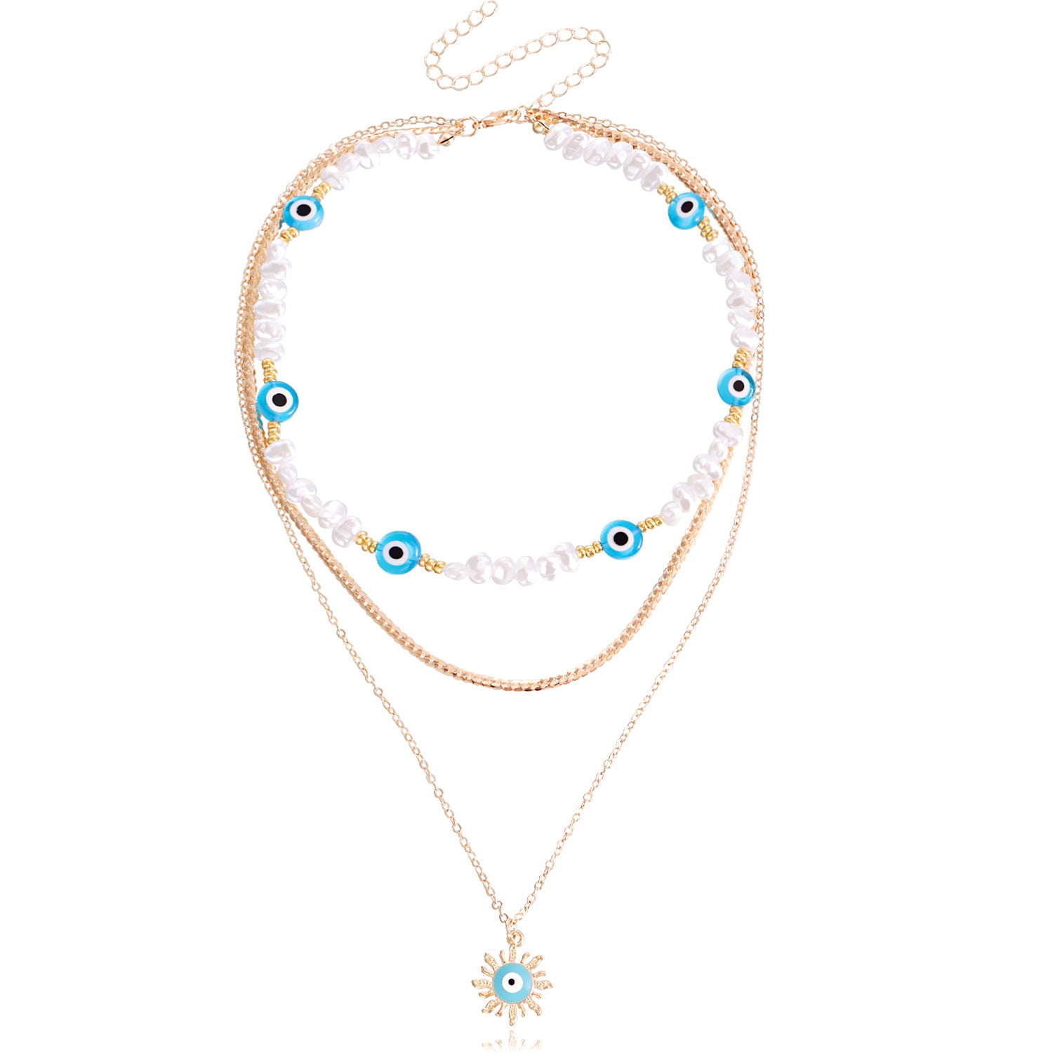 Jewelry ins multi-layer devil's eye beaded necklace female niche design imitation pearl clavicle chain