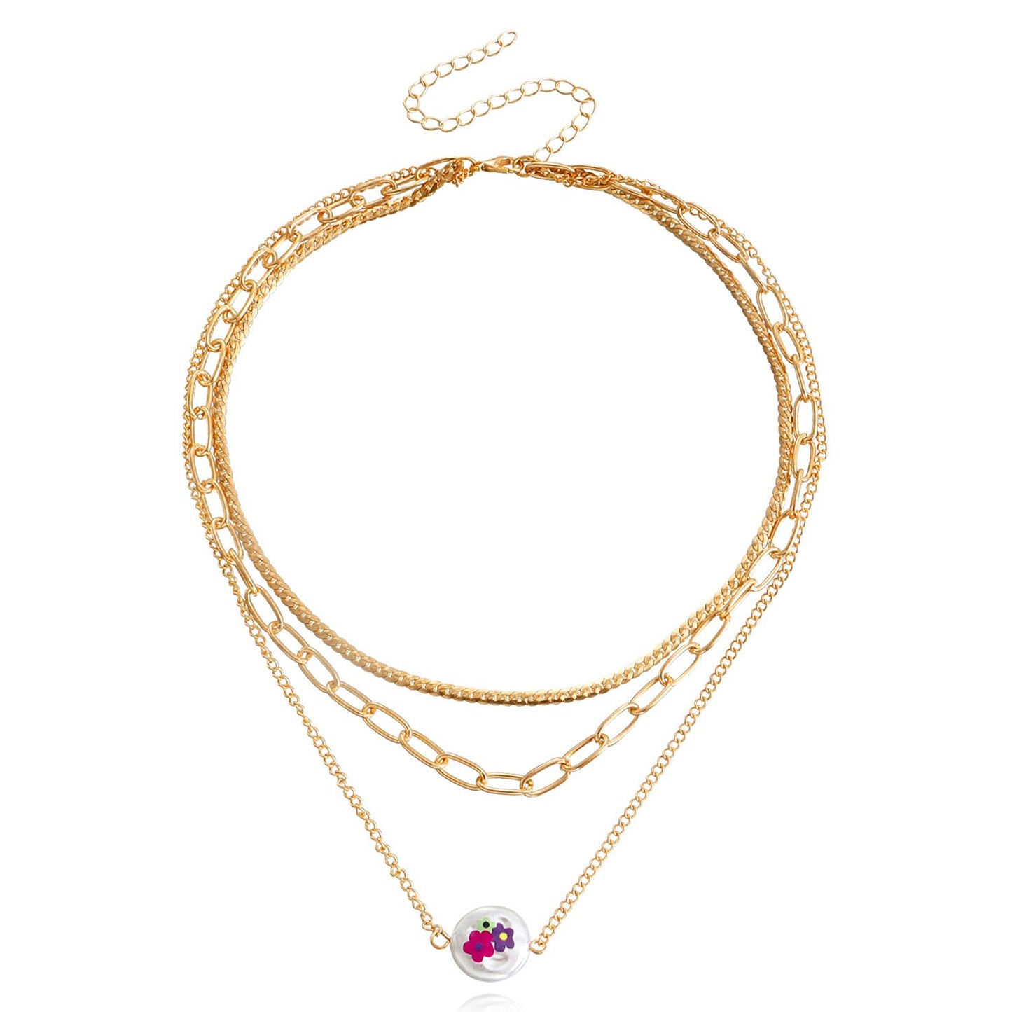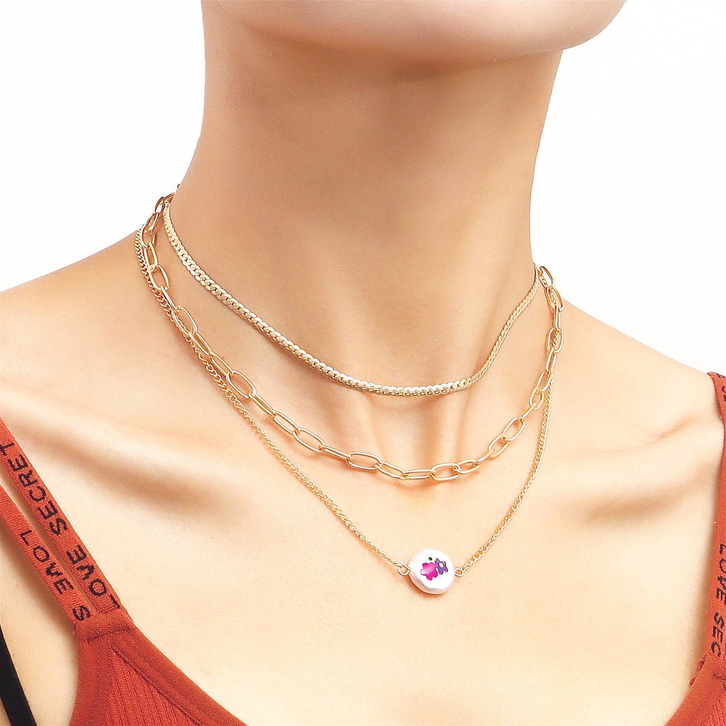 Jewelry ins snake bone chain female imitation pearl stacked necklace creative printing design light luxury necklace