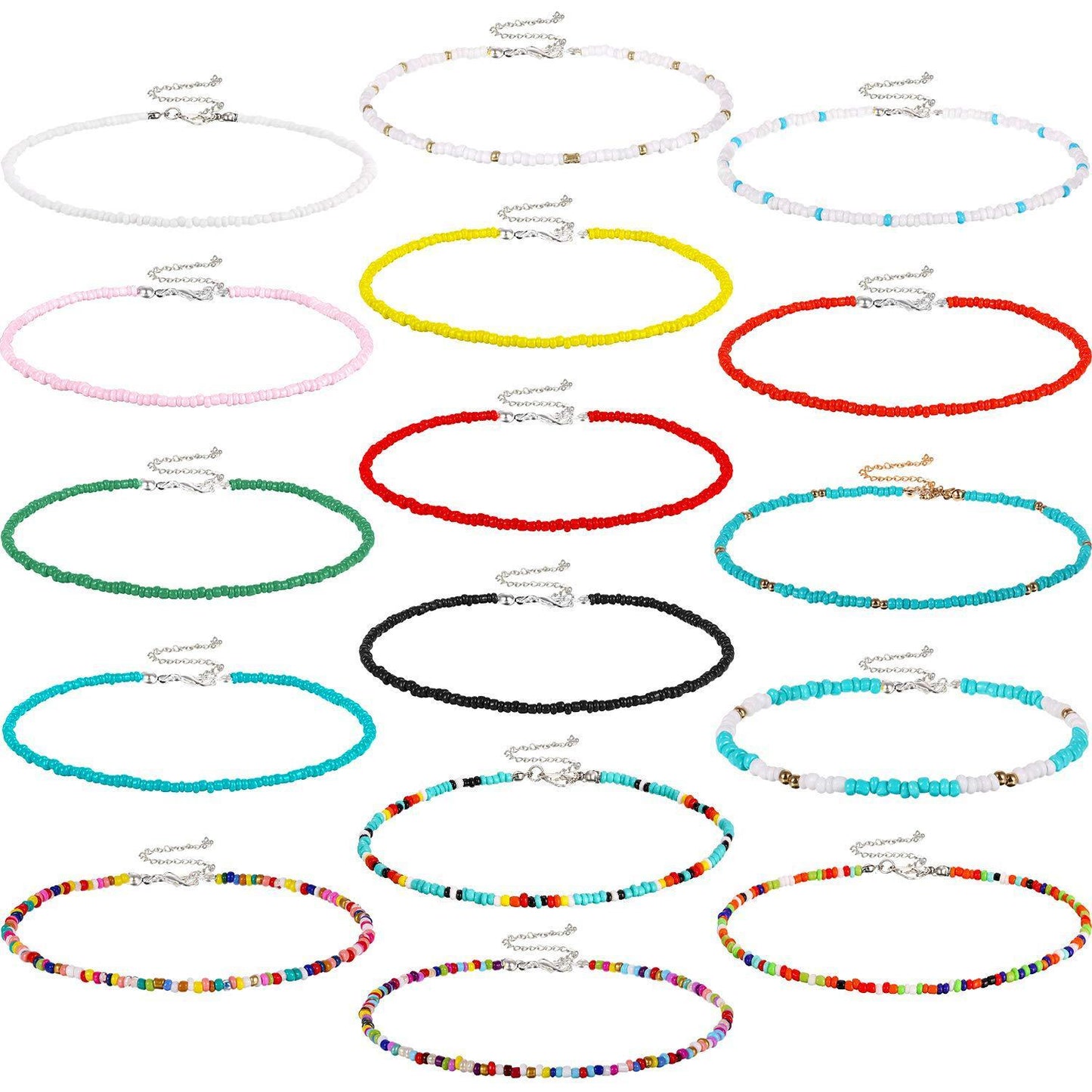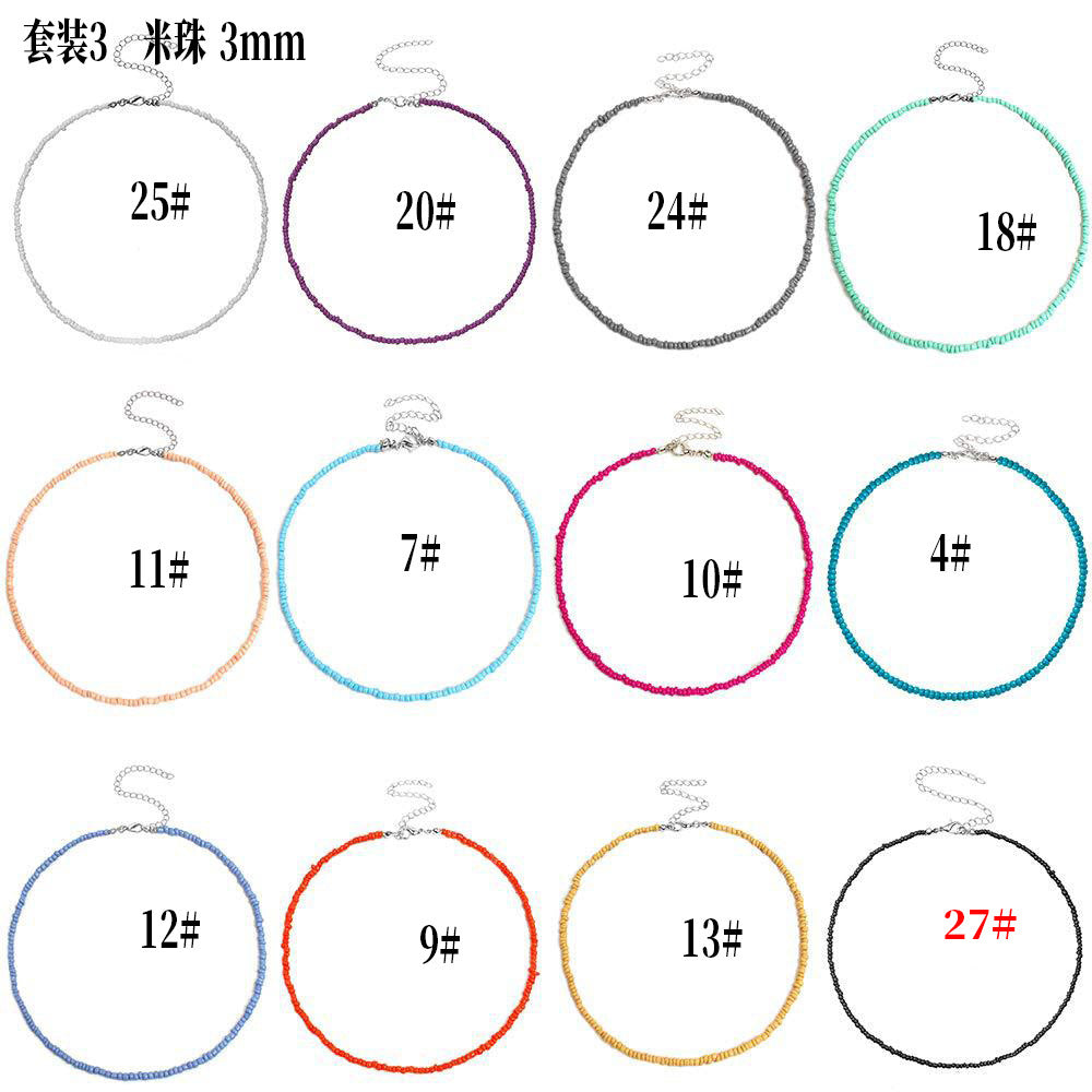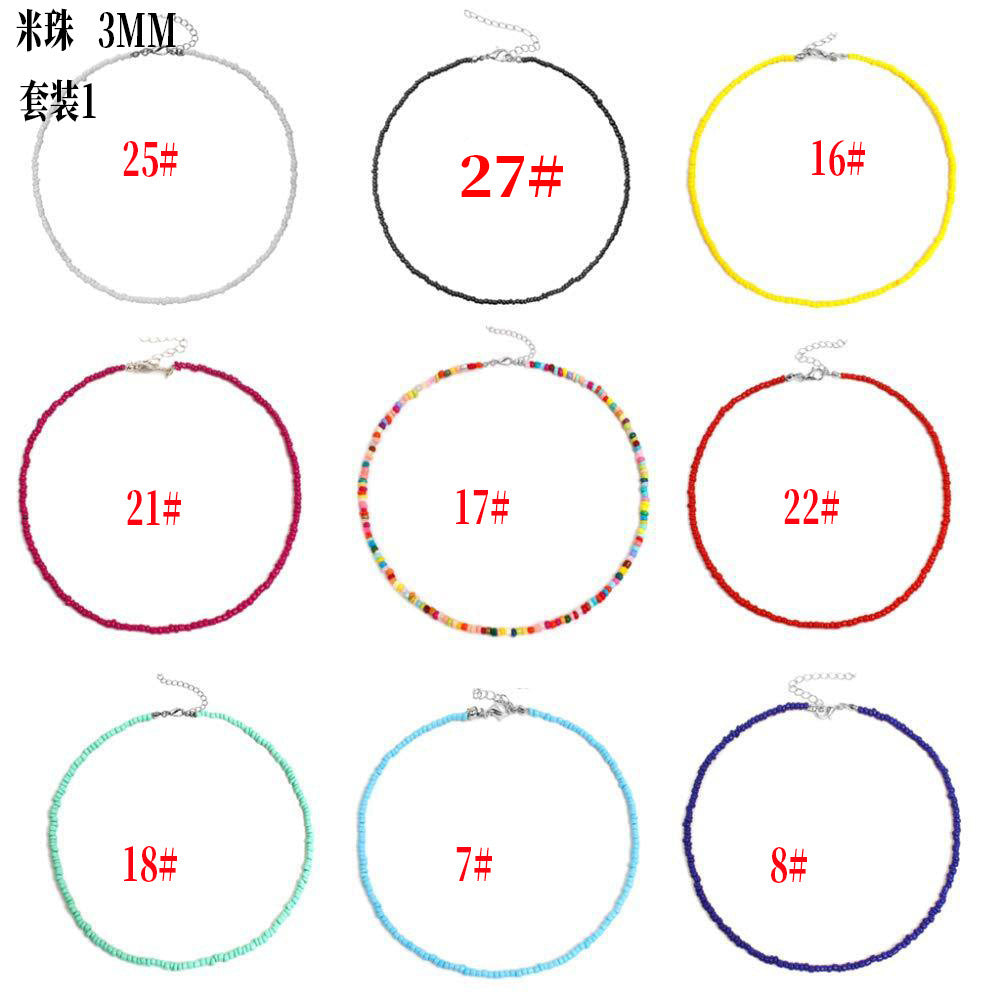 Jewelry Ladies Rice Bead Necklace Bohemian Short Solid Color Choker Necklace