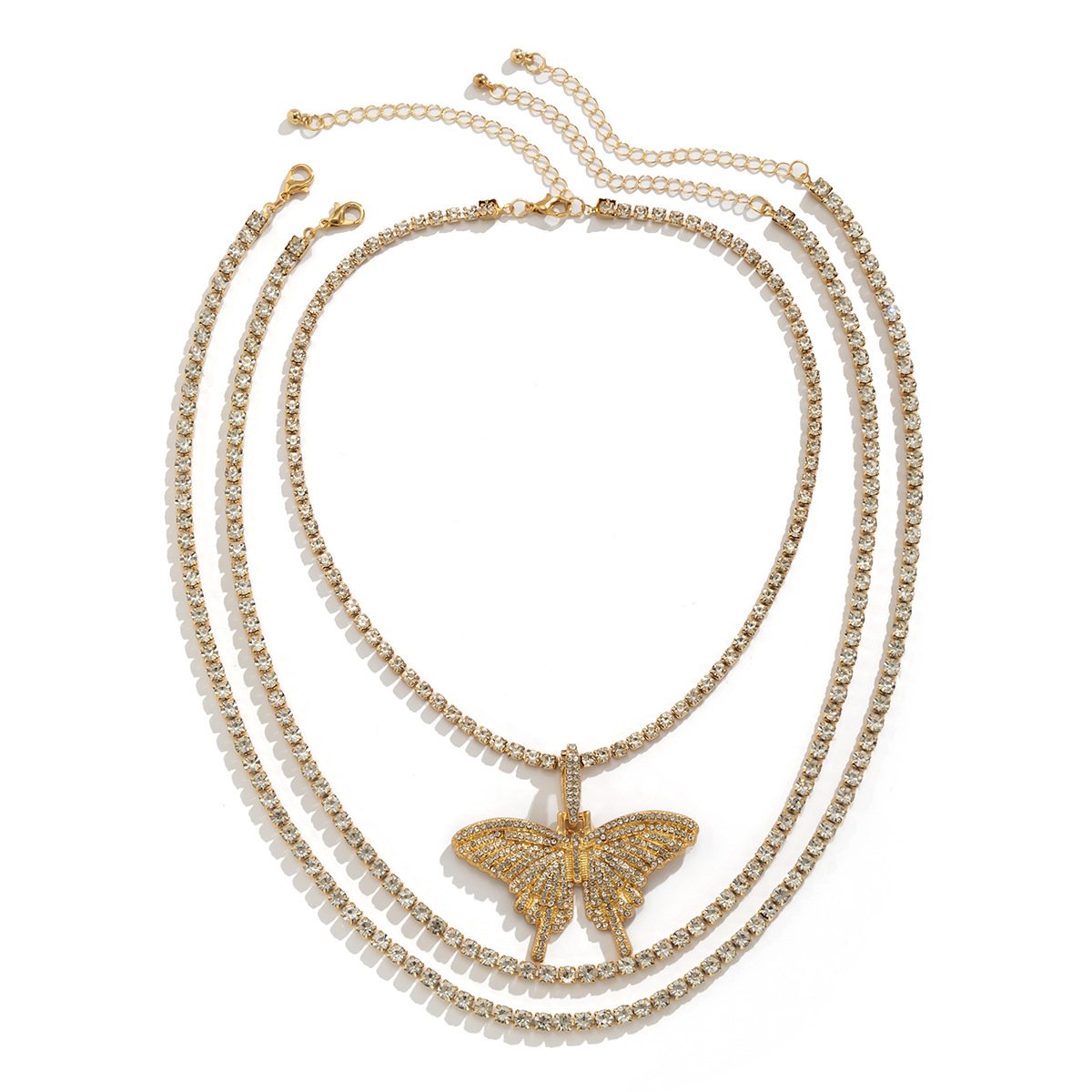 Jewelry Metal Texture Full Diamond Big Butterfly Necklace Hip Hop Simple Diamond Chain Men's and Women's Necklace