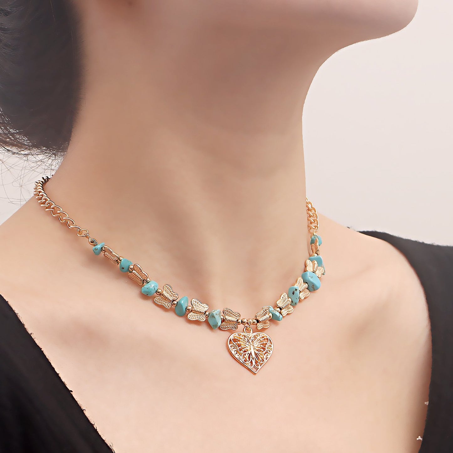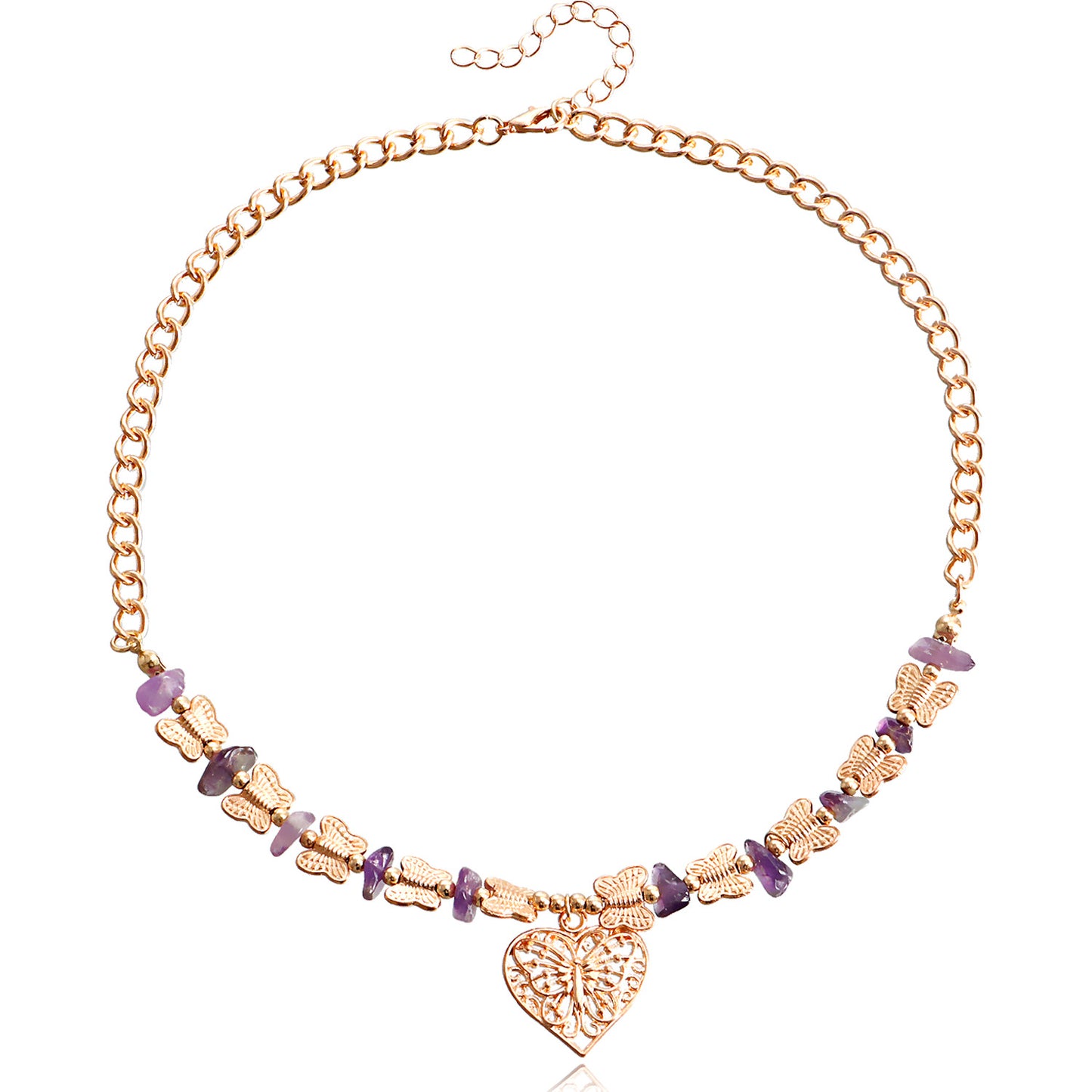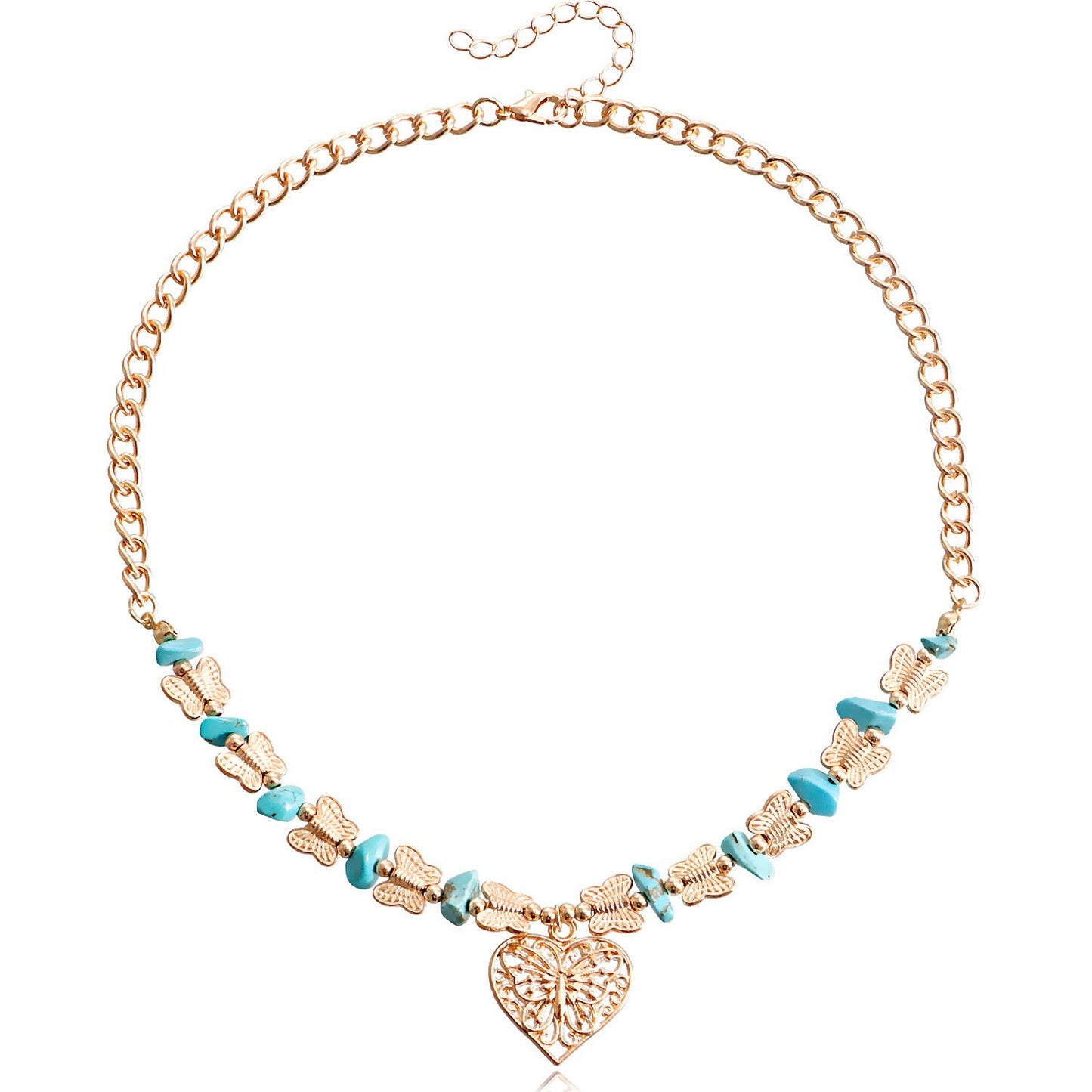 Jewelry Natural Stone Butterfly Stitching Gravel Clavicle Chain Necklace Retro Love Necklace Female