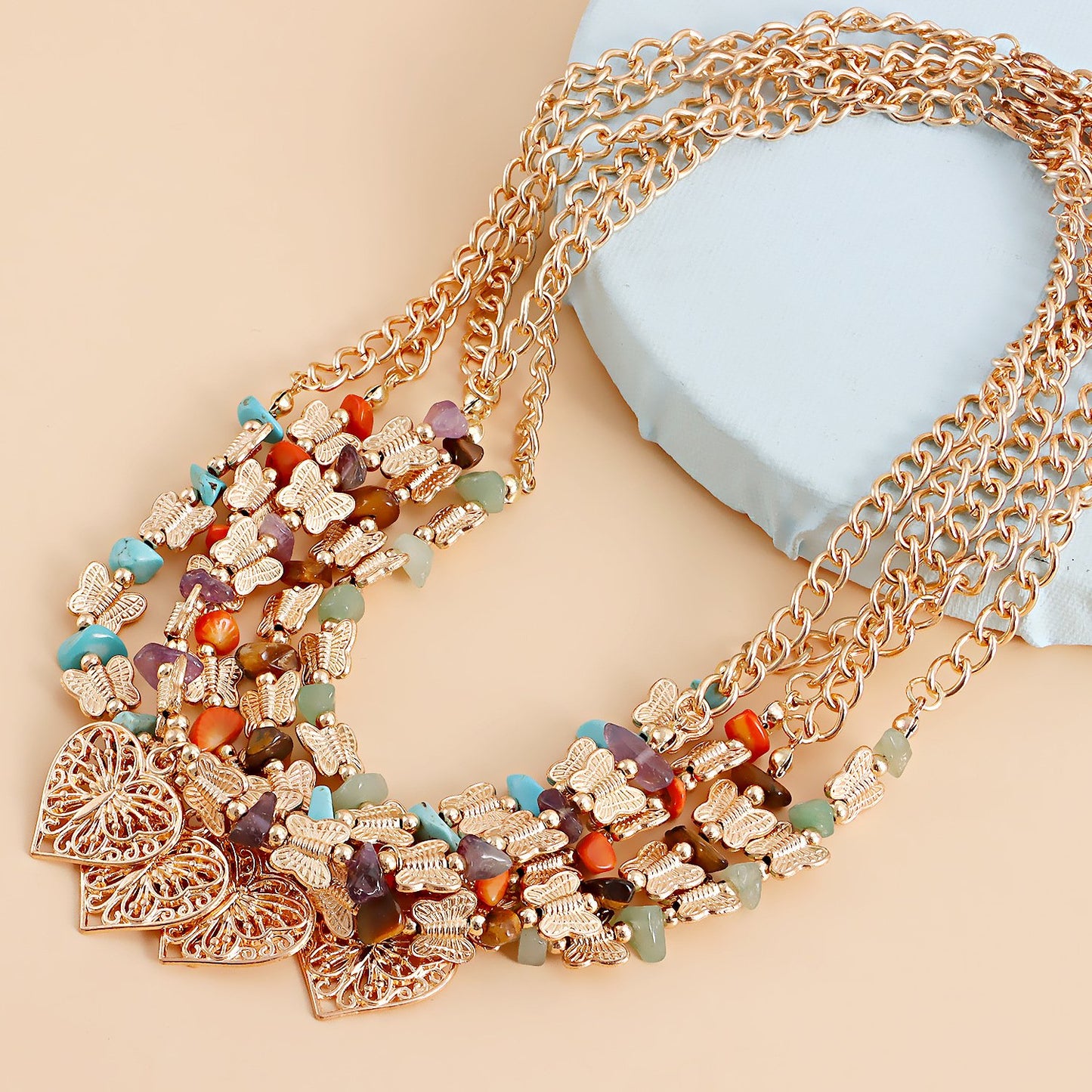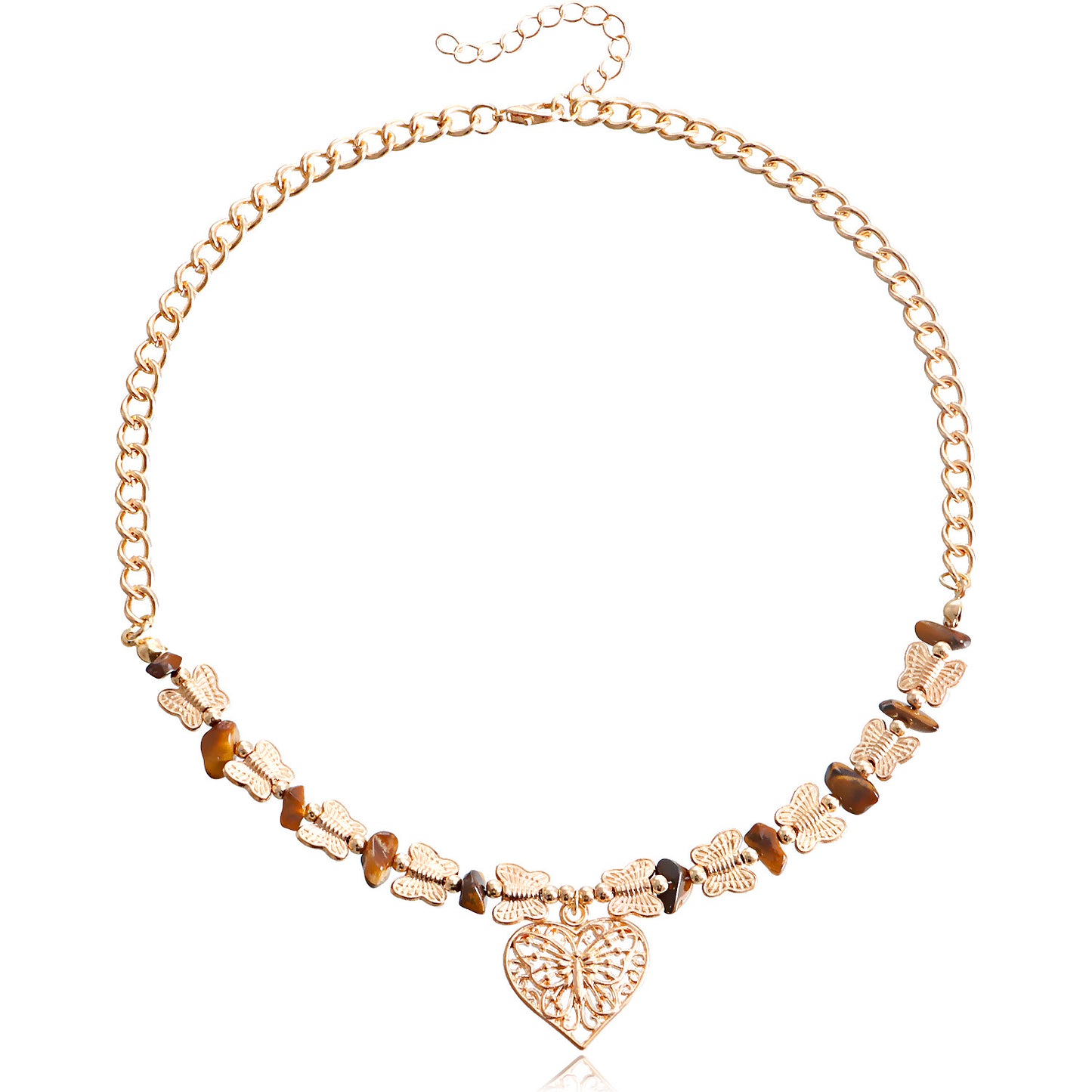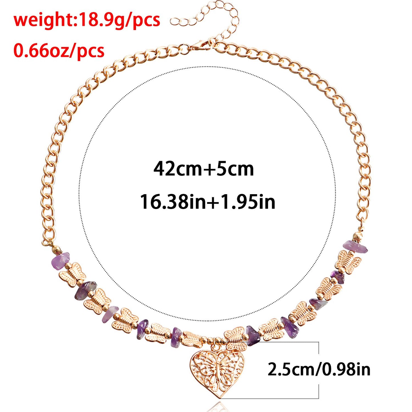 Jewelry Natural Stone Butterfly Stitching Gravel Clavicle Chain Necklace Retro Love Necklace Female