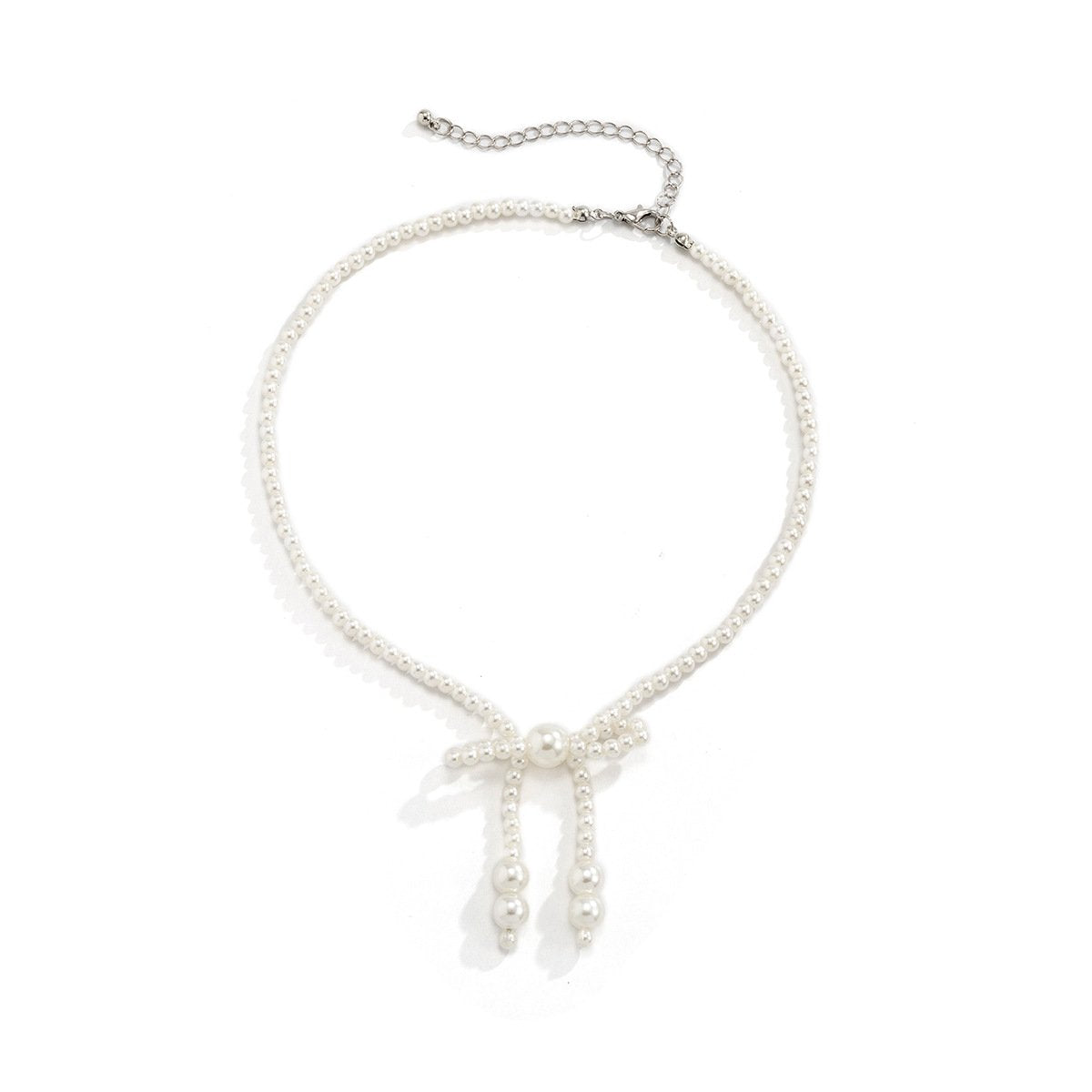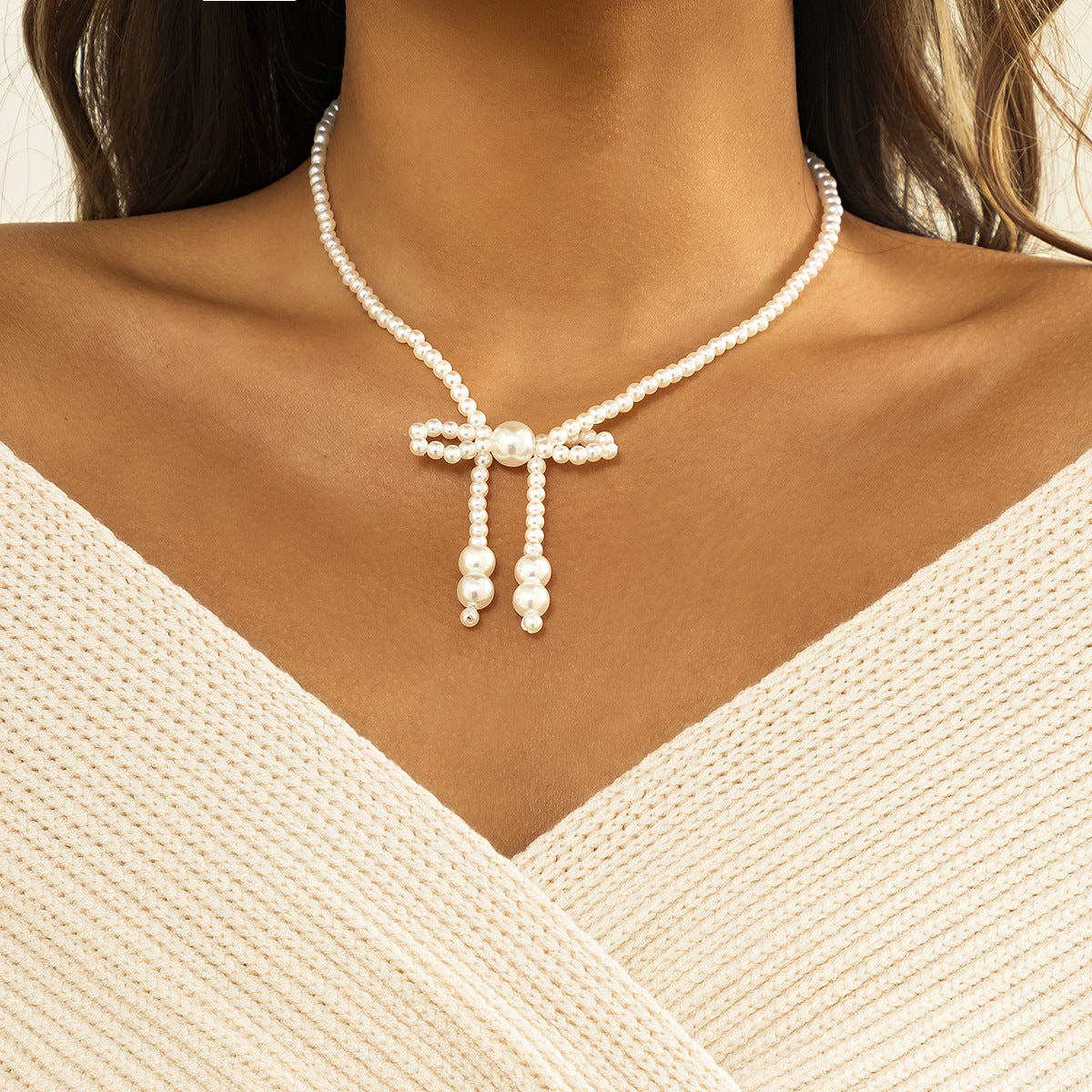 Jewelry Niche Design Bowknot Pearl Necklace Simple and Versatile Metal Snake Bone Chain Necklace