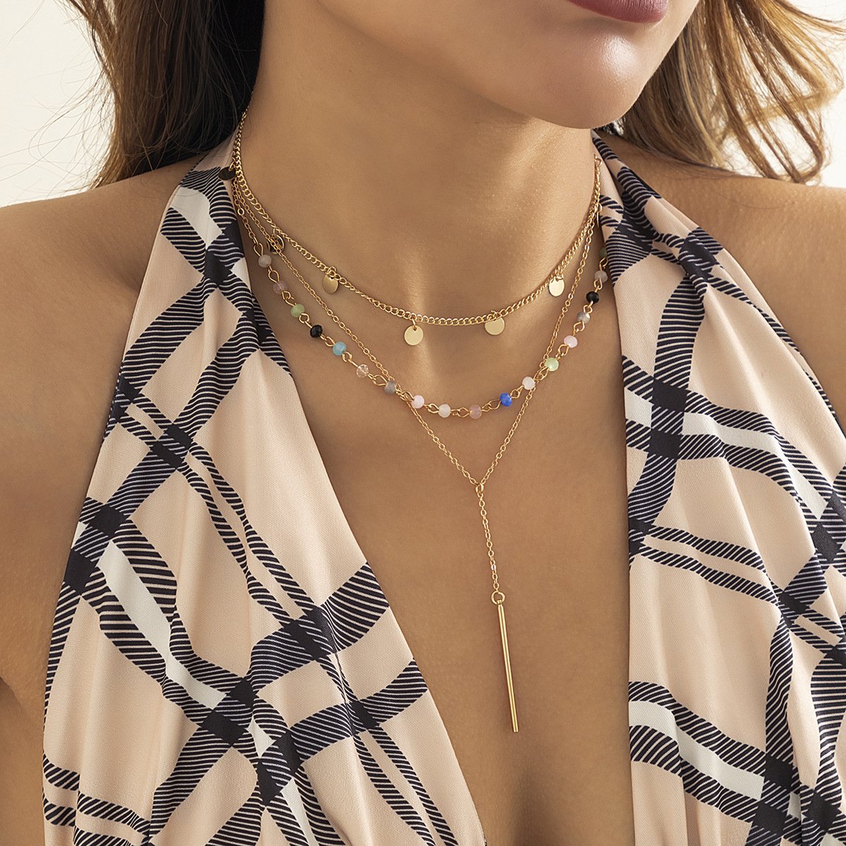 Jewelry Niche Design Imitation Crystal Sequin Tassel Necklace Necklace Geometric Pendant Hip Hop Necklace