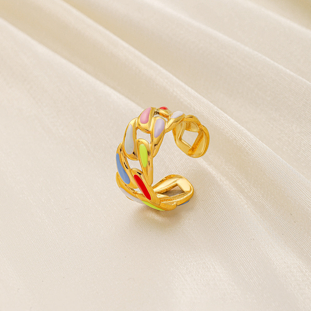 Jewelry niche design sense stainless steel color painting oil twist chain open ring