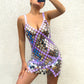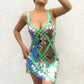 Jewelry Night V Neck Bikini Dress Sexy Sequins Mixed Color Stitching Body Chain