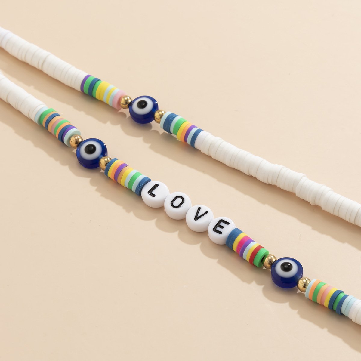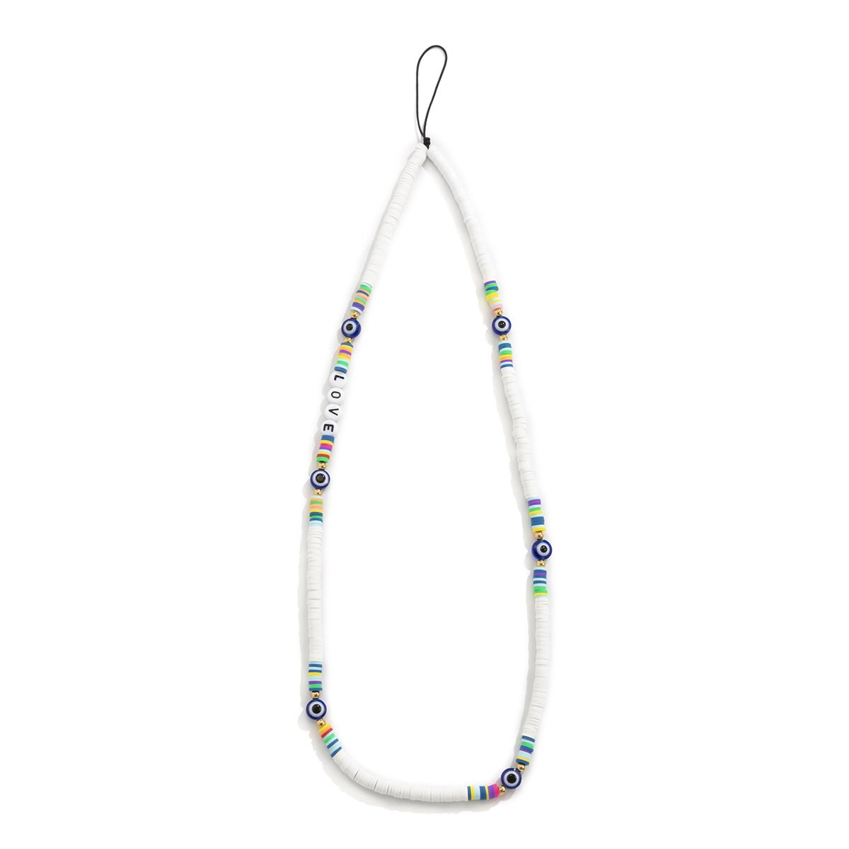 Jewelry Personality Eye Letter Beaded Hanging Neck Mobile Phone Chain Soft Pottery Weaving Geometric Mobile Phone Ornament
