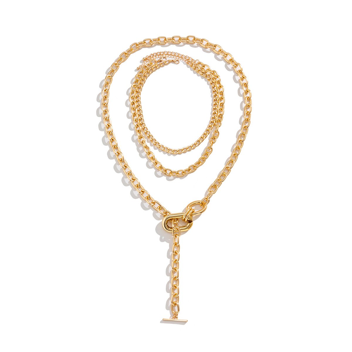 Jewelry Personality Punk Metal Buckle Clavicle Necklace Simple Cross Multilayer Exaggerated Chain Necklace