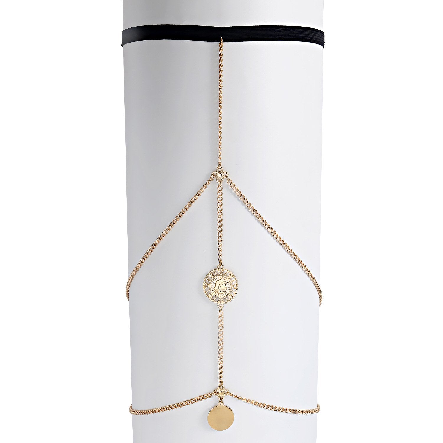 Jewelry retro exaggerated sexy street style body chain tassel multi-layer coin leg chain female