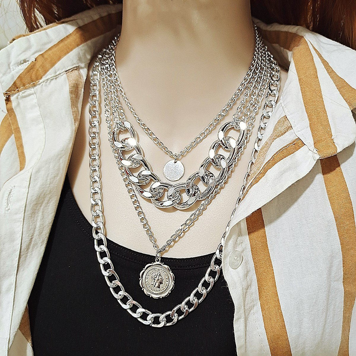 Jewelry retro multi-layer chain lace image necklace female personality multi-layer sweater chain