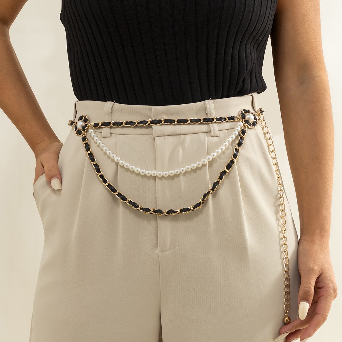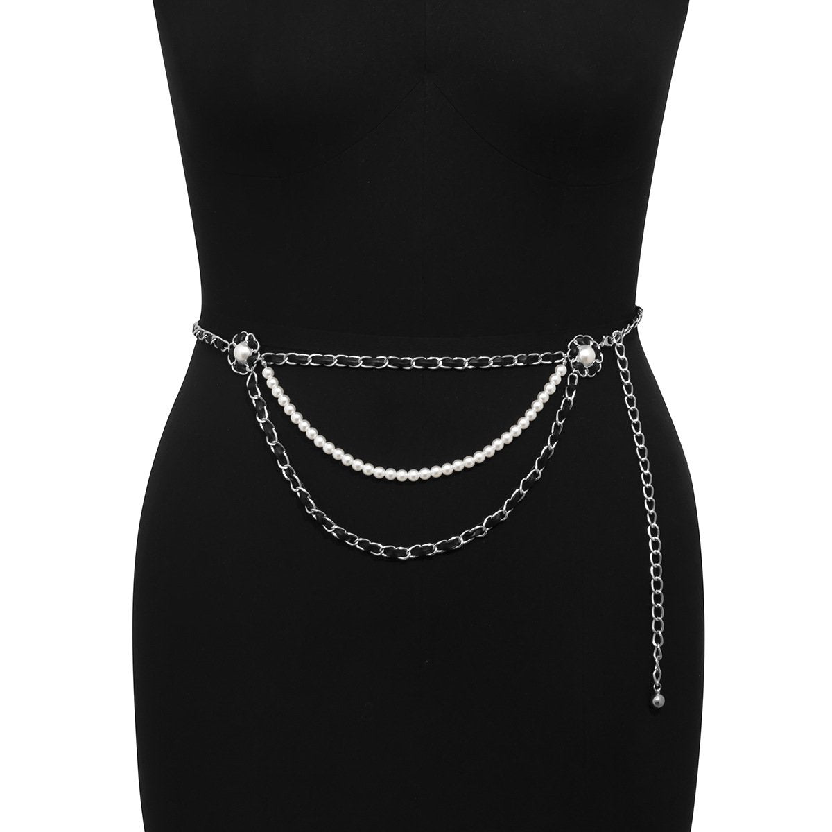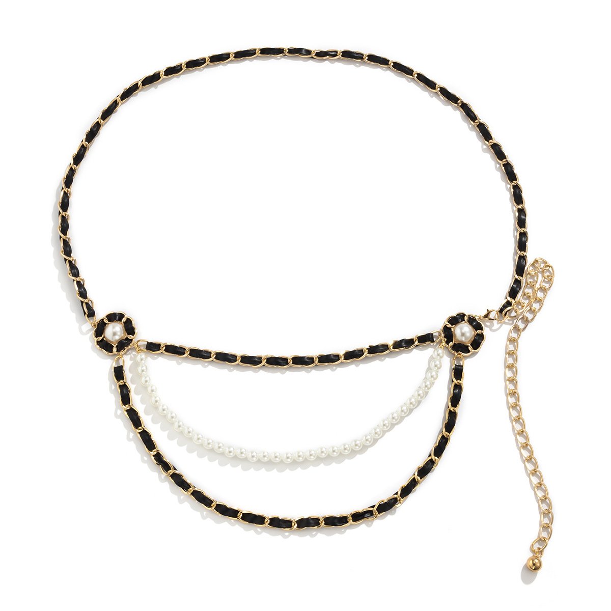 Jewelry Retro Xiaoxiang Pearl Flower Disk Waist Chain Female Design Sense Versatile PU Chain Body Chain