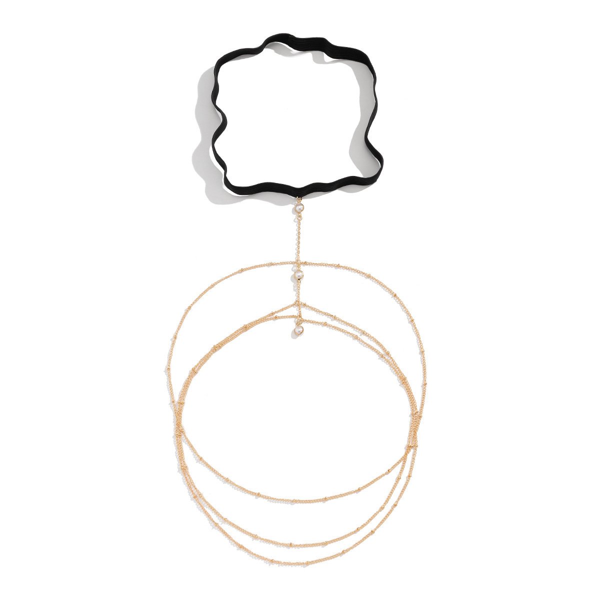 Jewelry Sexy Beach Imitation Pearl Body Chain Simple Sexy Star Rhinestone Tassel Thigh Chain