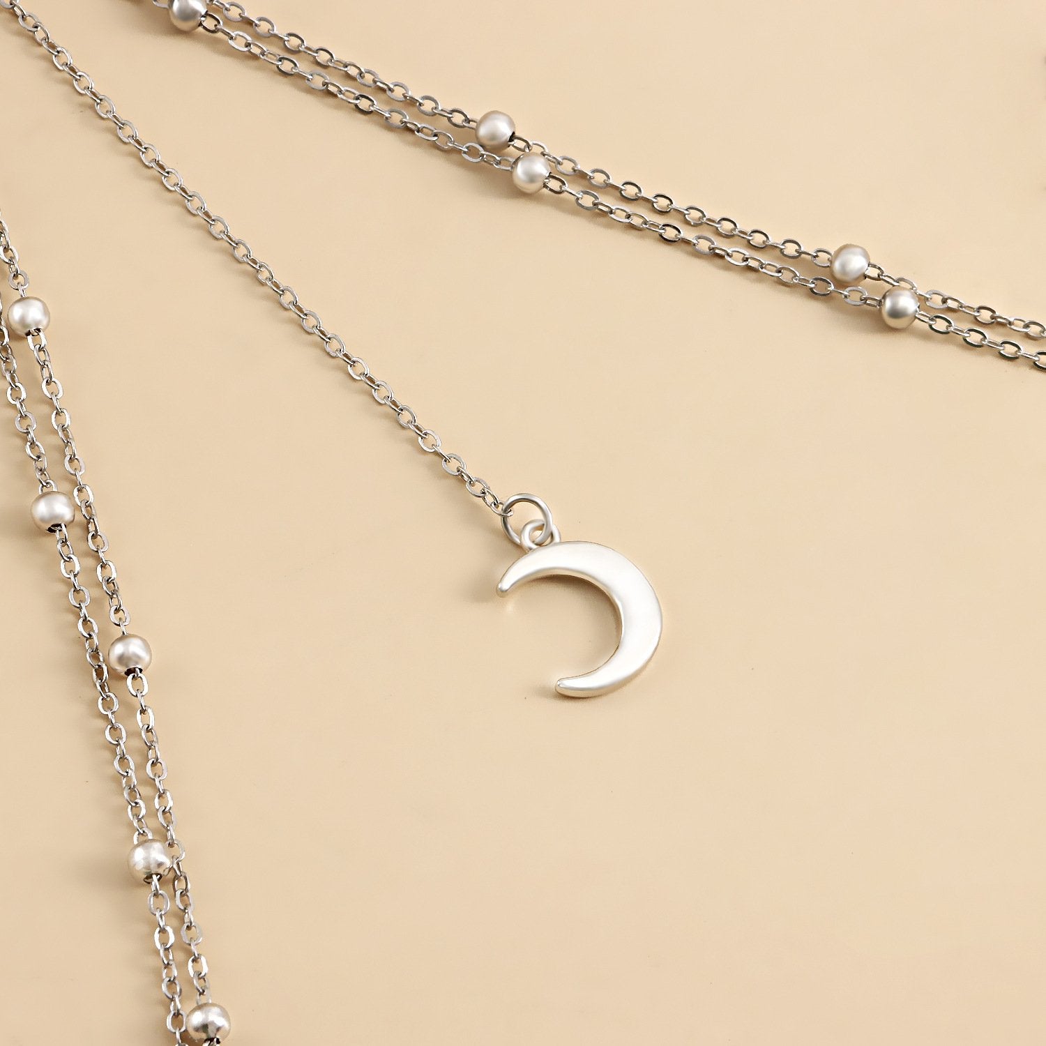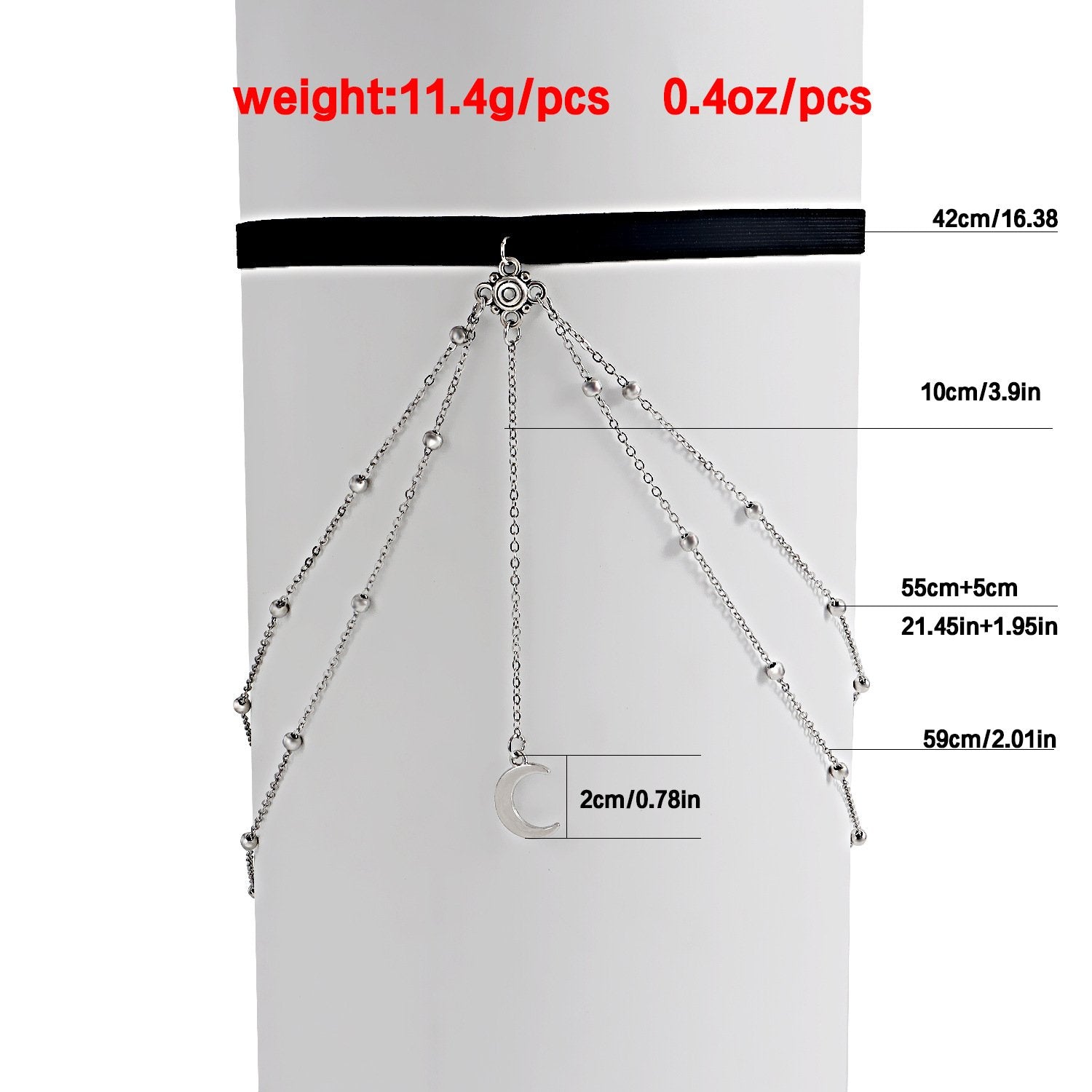 Jewelry Sexy Stretch Double Layer Ball Chain Body Chain Metal Crescent Moon Pendant Tassel Thigh Chain