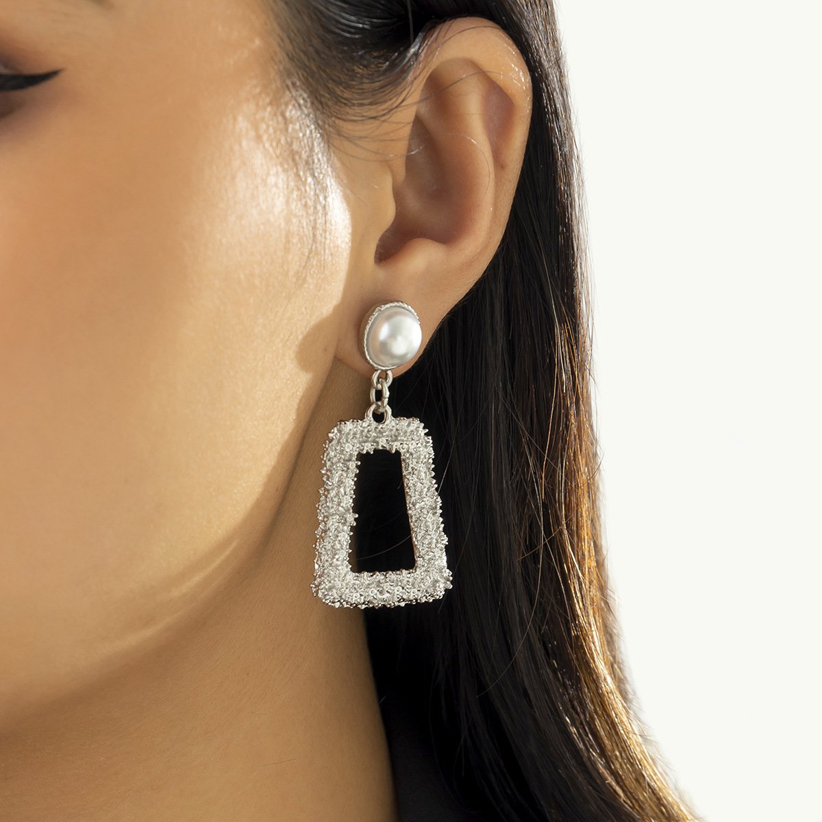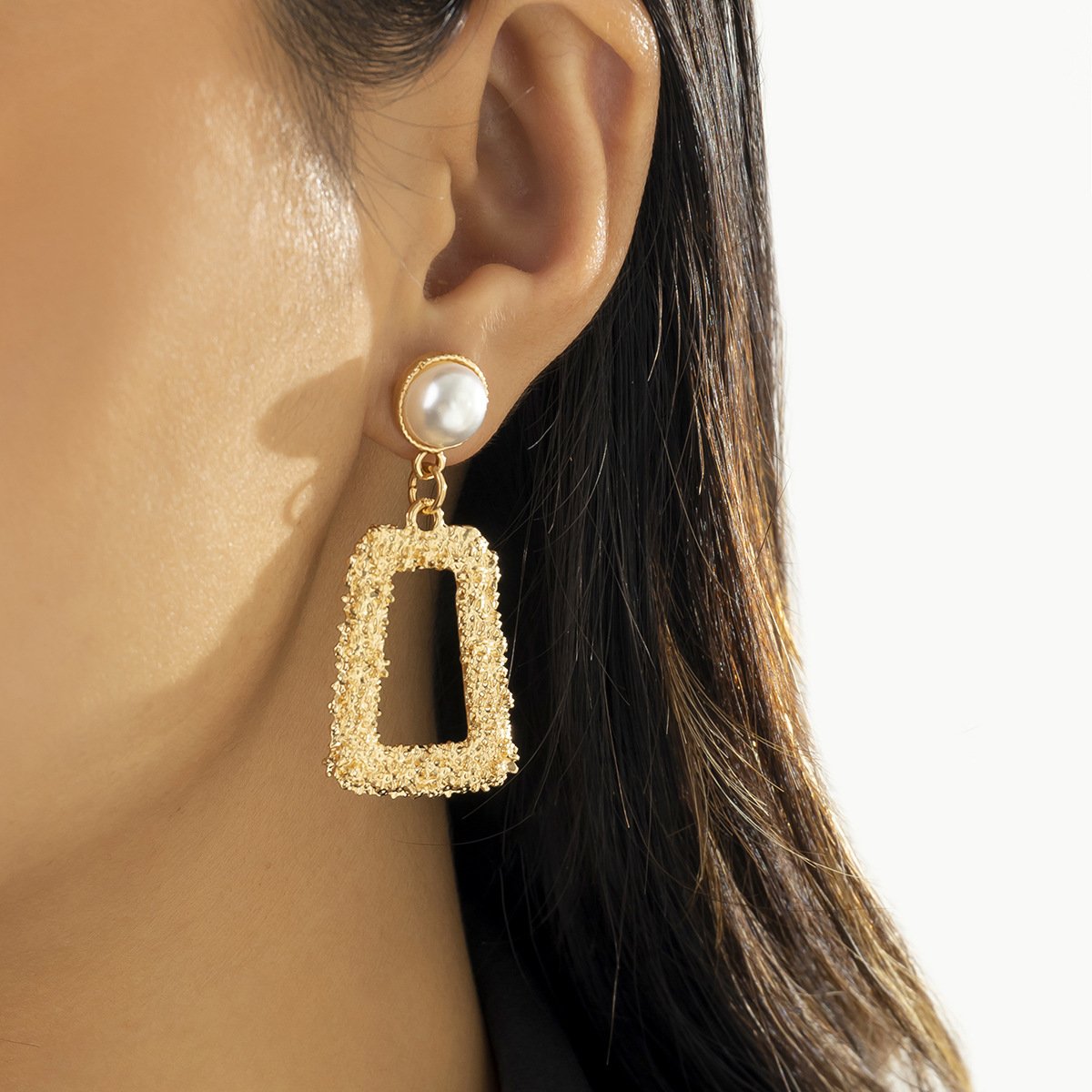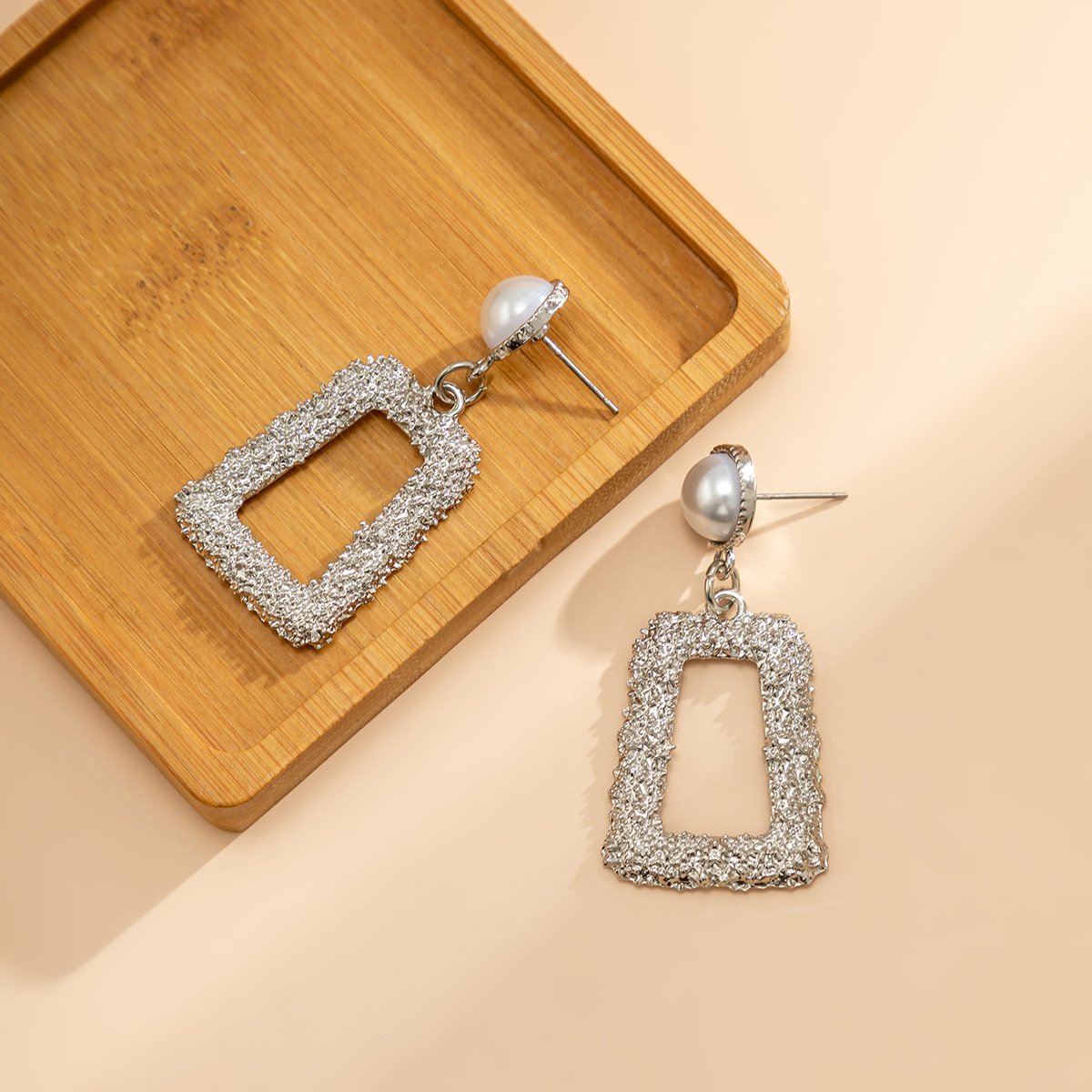 Jewelry simple temperament cold pearl earrings female niche metal sweet cool square earrings