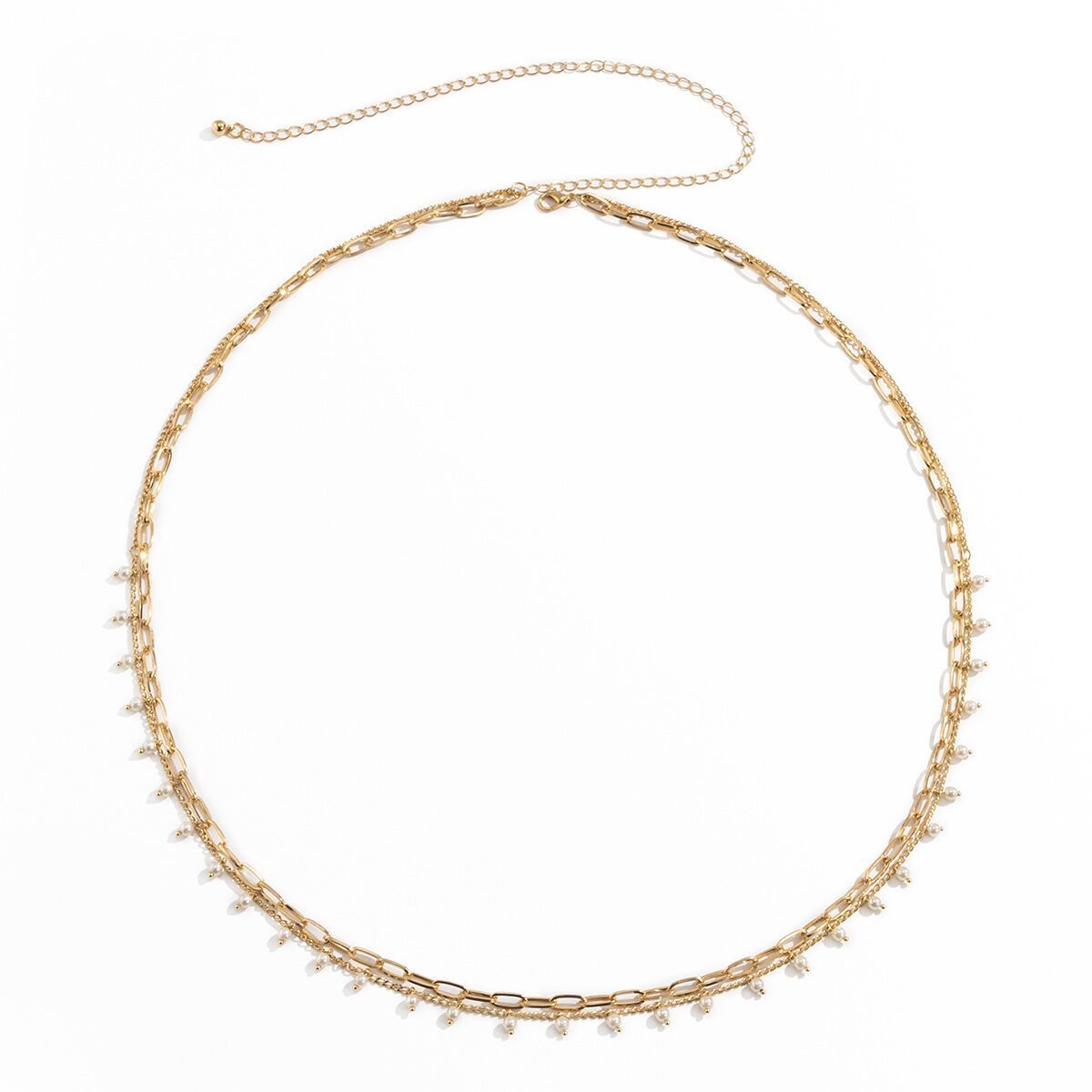 Jewelry small fragrance temperament imitation pearl waist chain retro multi-layer chain geometric body chain