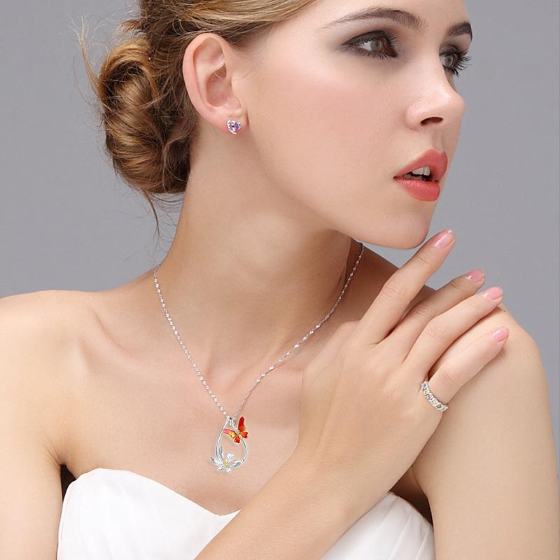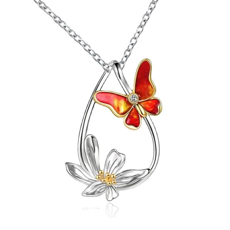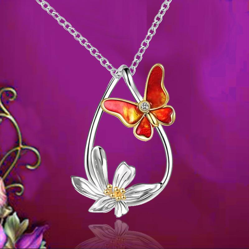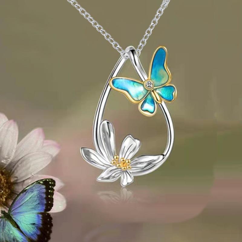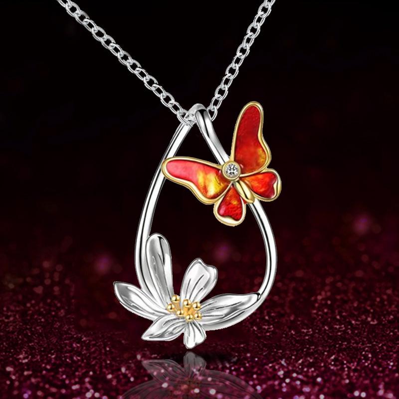 Jewelry Summer Flower Butterfly Pendant Necklace Female Niche Design Sense Fashion Clavicle Chain Jewelry