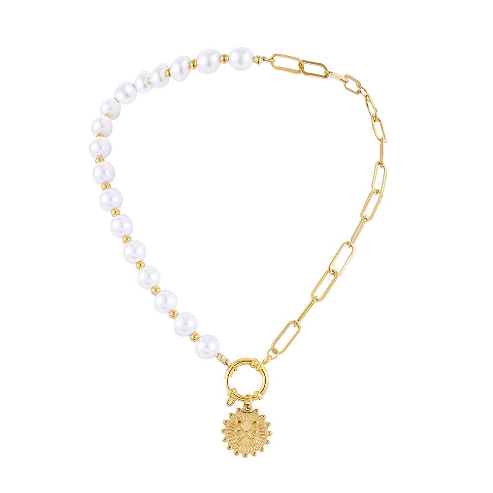 Korean ins light luxury public high-end design sense stainless steel golden coin arrow lock necklace