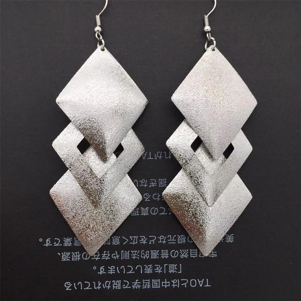 Multilayer Rhombus Metal Sheet Long Earrings Exaggerated Earrings Fashion Fashion Accessories Earrings