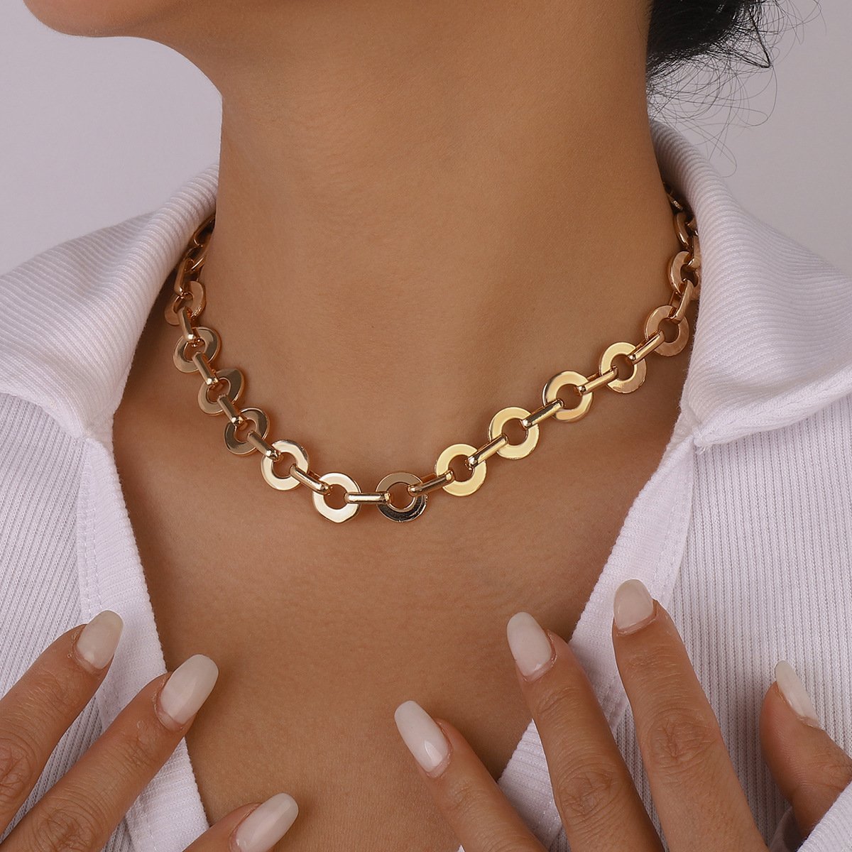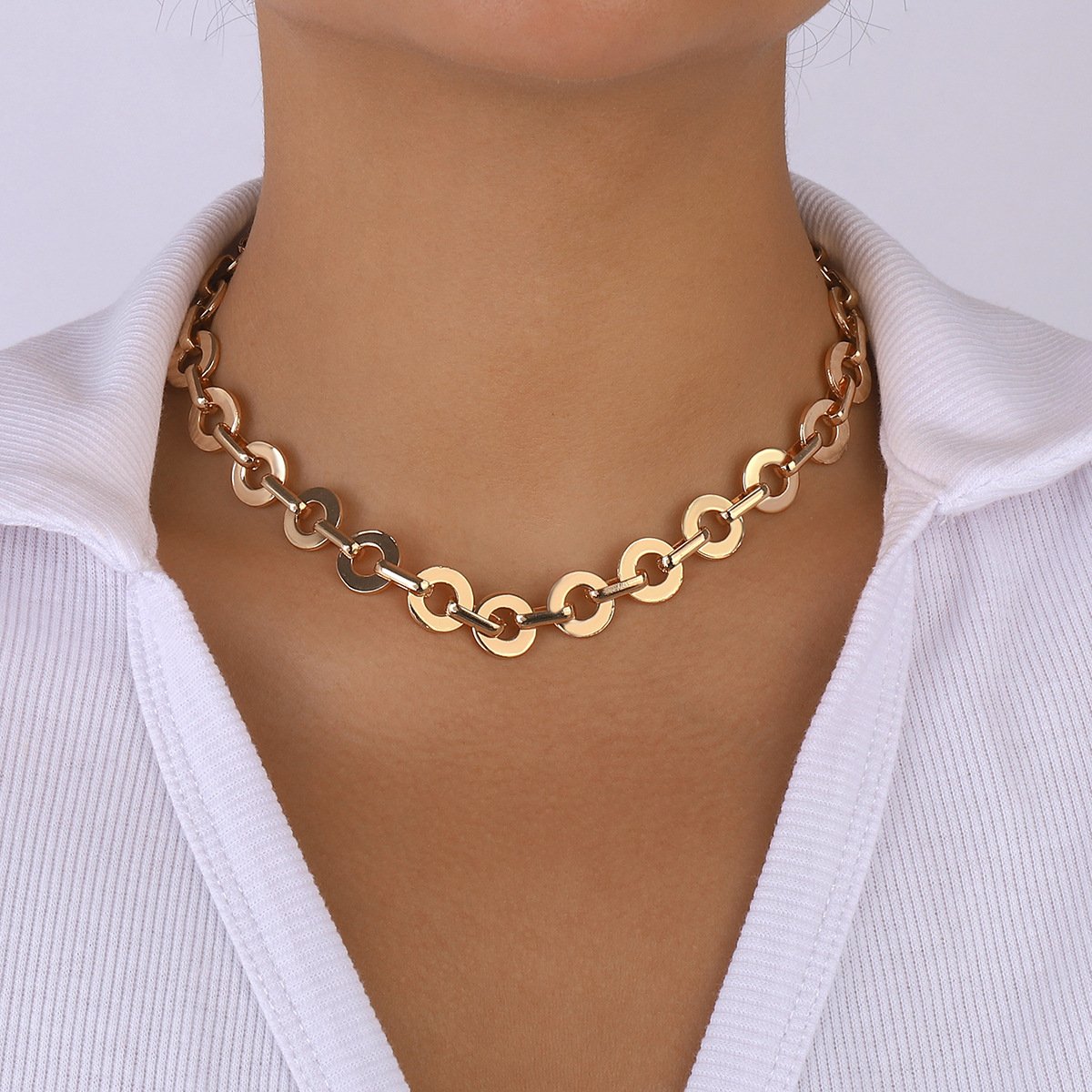 N1155 Metal Simple Geometric Necklace Creative O Word Chain Stitching Clavicle Necklace Retro Personality Necklace Female