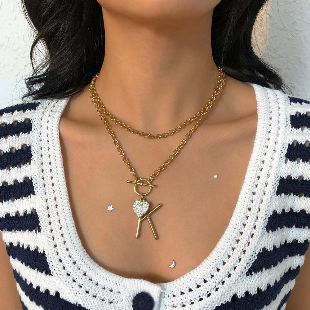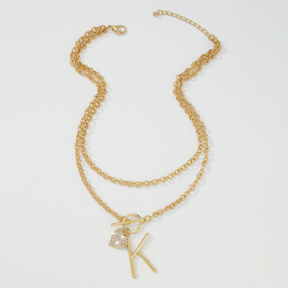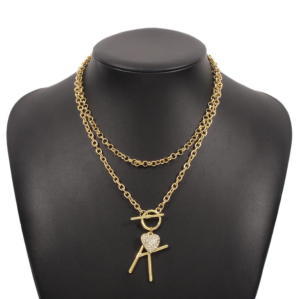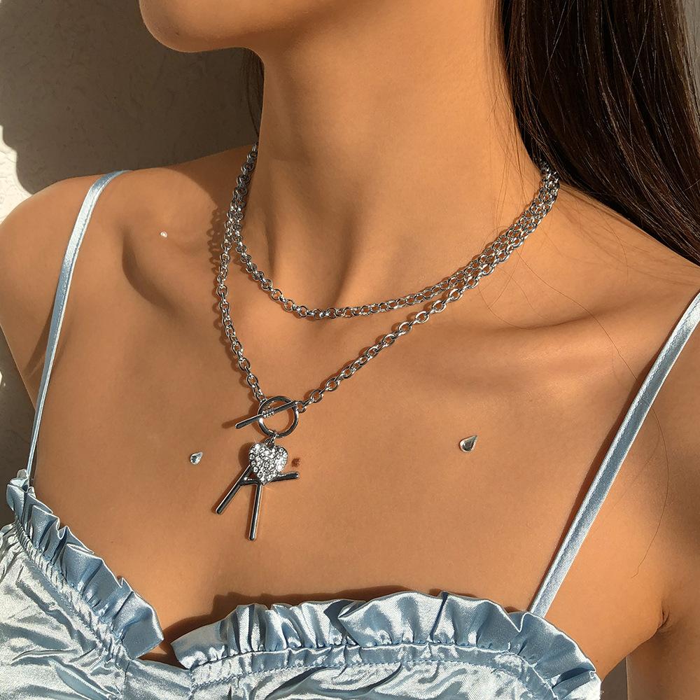 N9344 Letter Love Geometric Necklace Diamond-studded Creative Hollow Necklace Simple Trendy Cool Temperament Necklace Female
