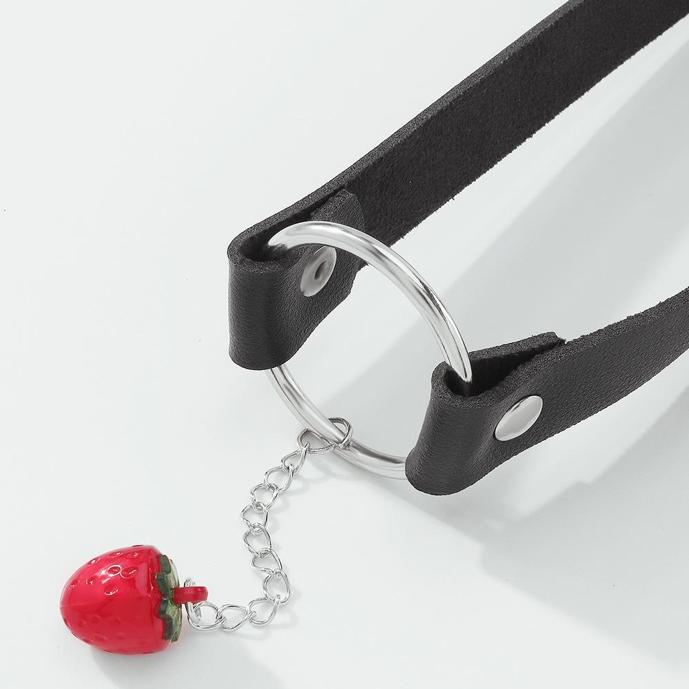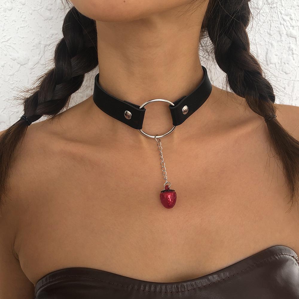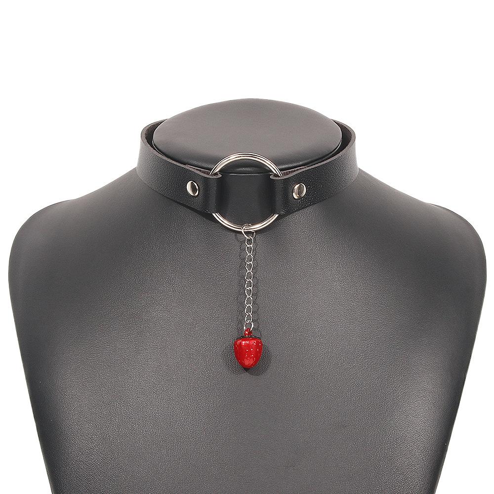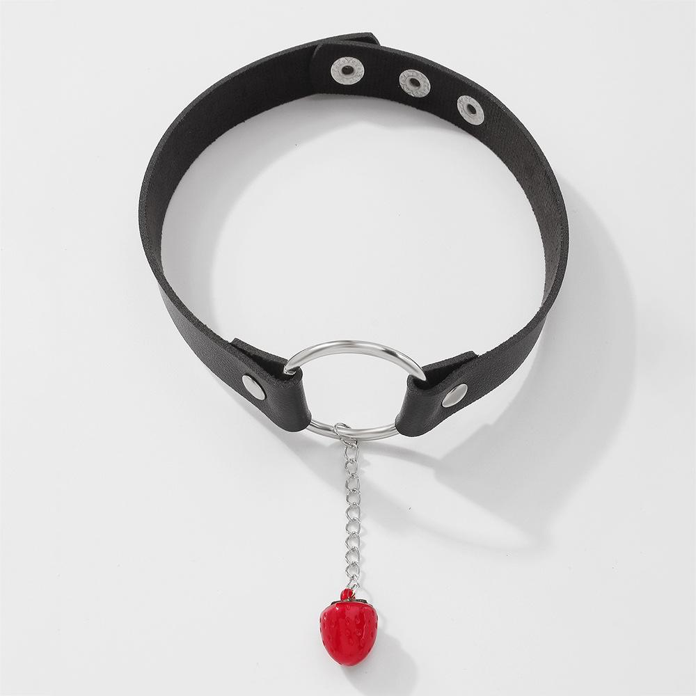 N9579 Exaggerated Personality Necklace Leather Resin Strawberry Necklace Punk Harajuku Night Retro Necklace