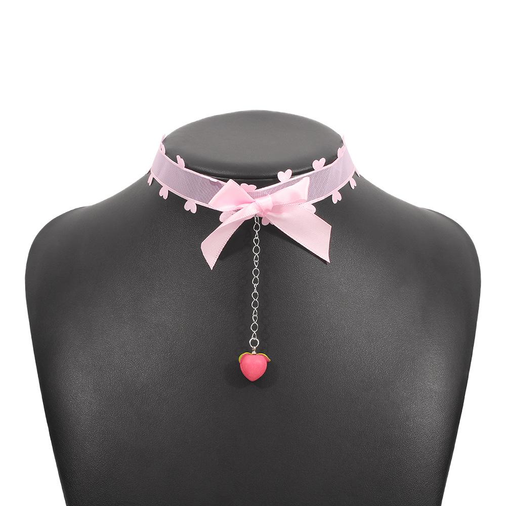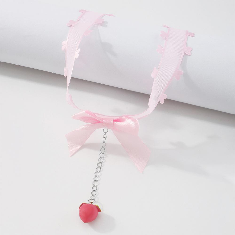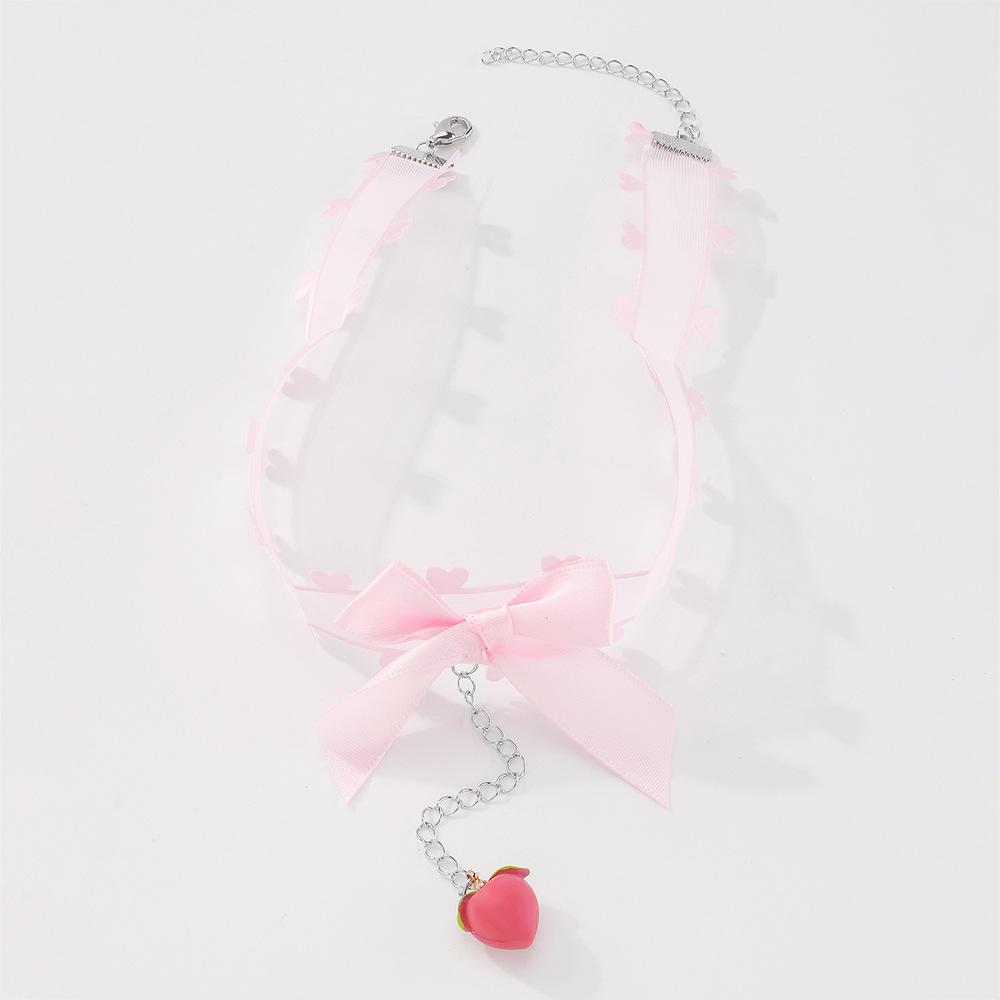 N9634 Jewelry Temperament Lady Peach Heart Pendant Necklace Bow Knot Yarn Fashion Necklace