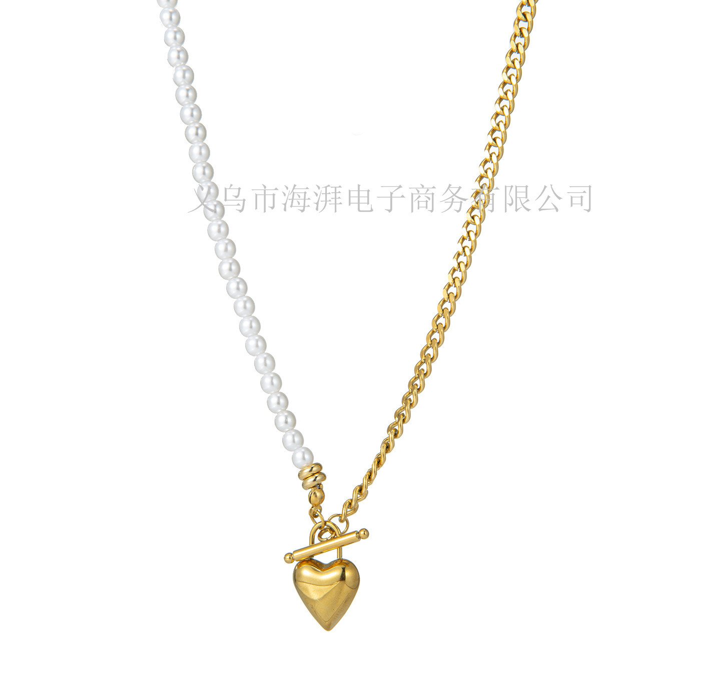 Natural freshwater pearl necklace women's titanium steel small heart necklace double stacked elegant clavicle chain jewelry