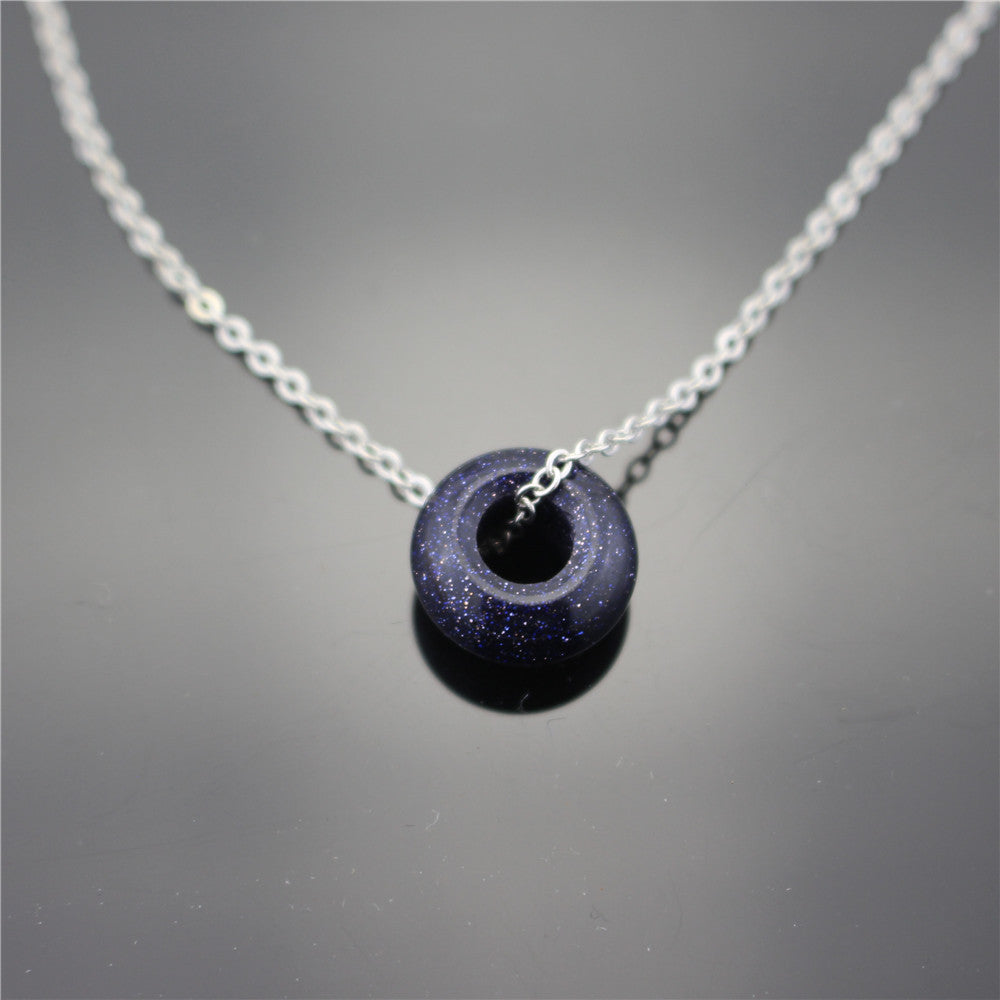 Natural Stone Ring Pink Quartz Pendant Clavicle Chain Necklace Fashion Accessories
