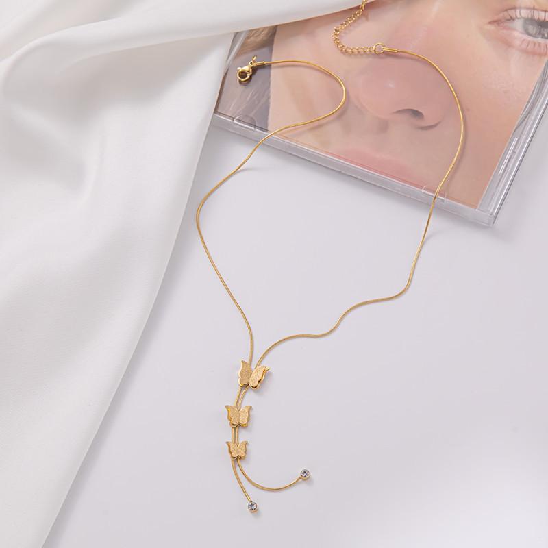 Necklace net red explosion style does not fade titanium steel necklace three-dimensional butterfly tassel pendant clavicle chain