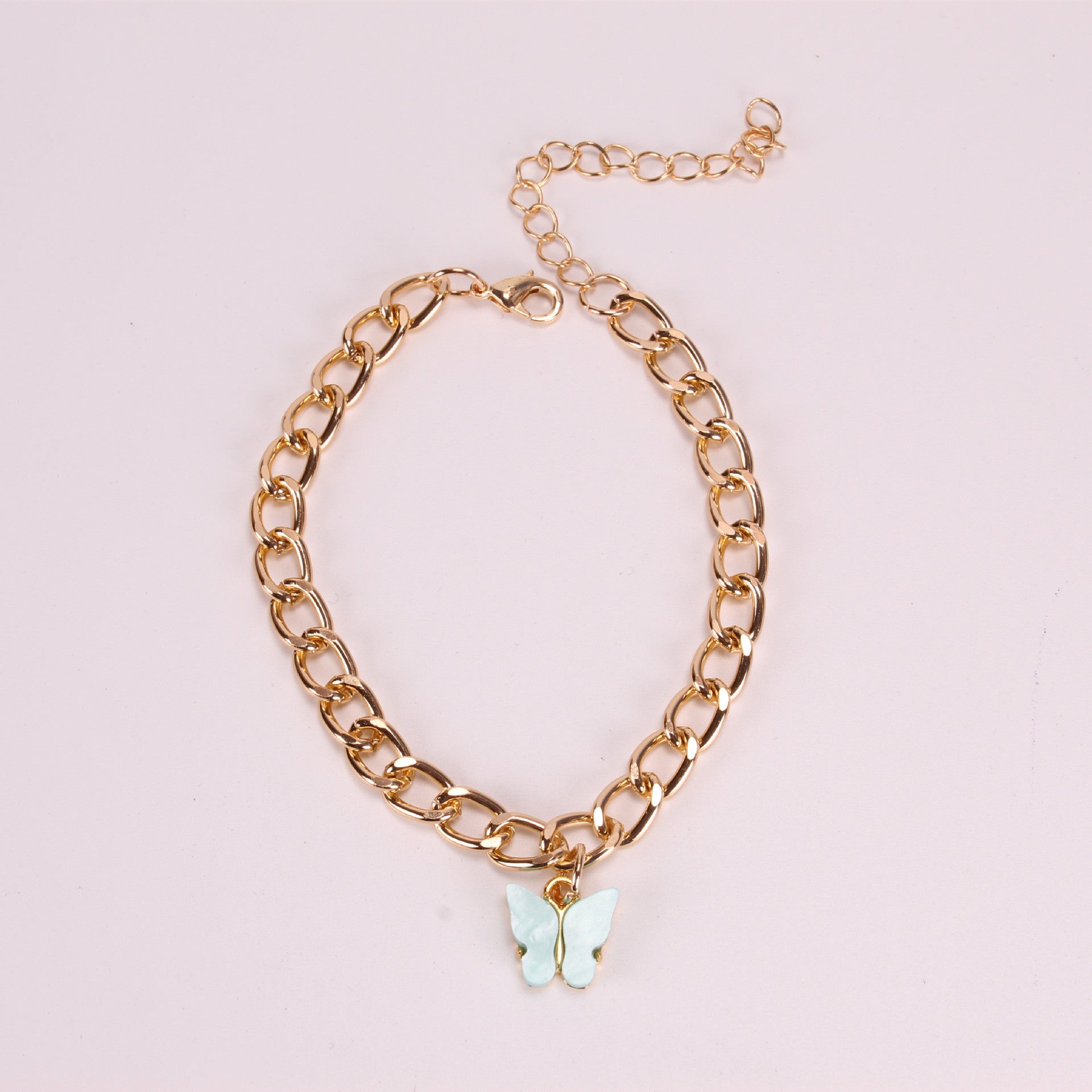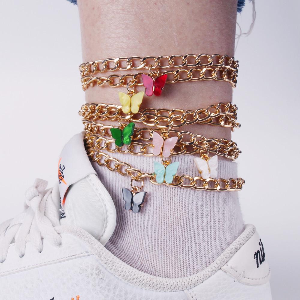 New simple summer beach anklet ins color acrylic butterfly anklet metal thick chain anklet
