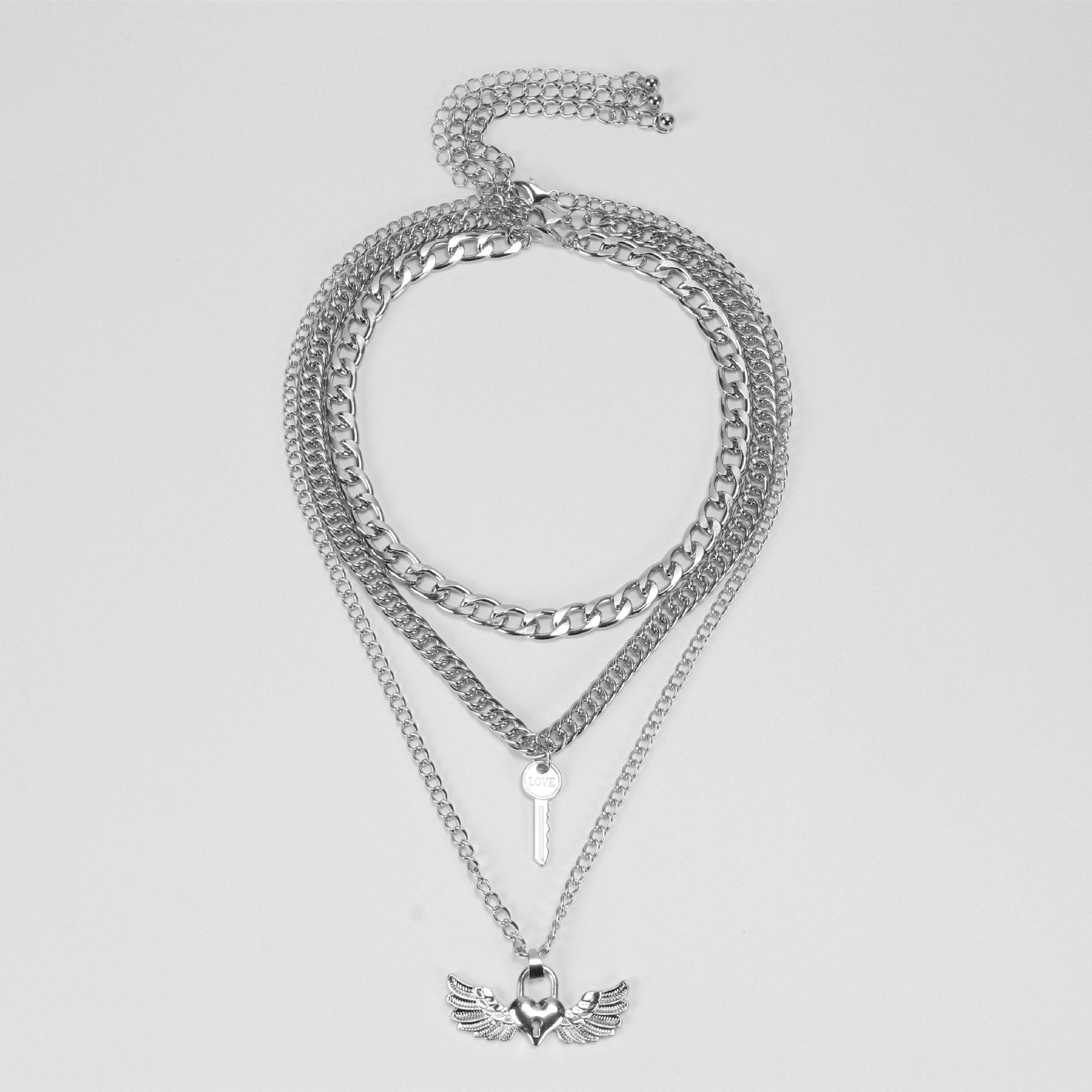 New year creative necklace personality exaggerated LOVE peach heart lock necklace female Valentine's Day multi-layer necklace female