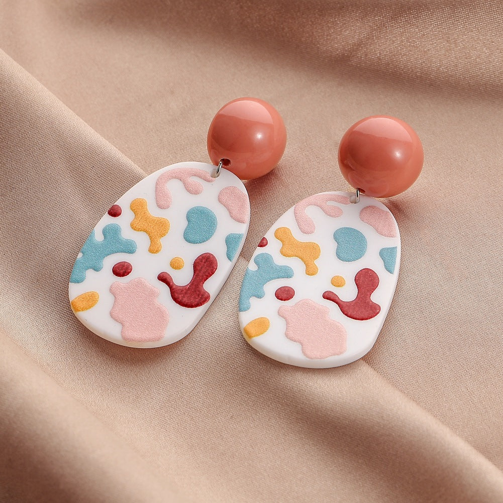 Original geometric acrylic plate graffiti earrings art abstract painting exaggerated temperament earrings