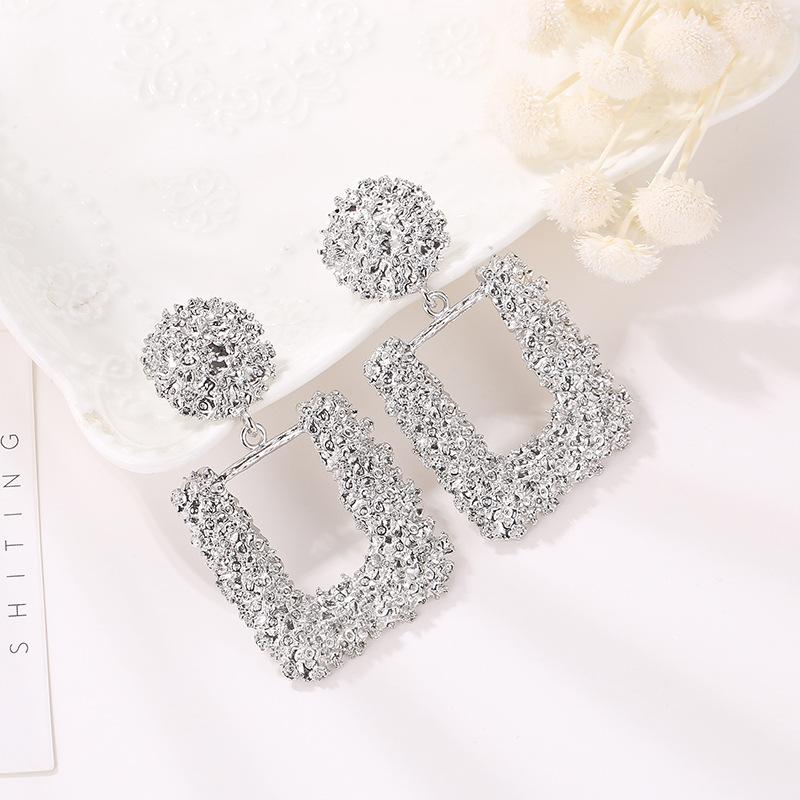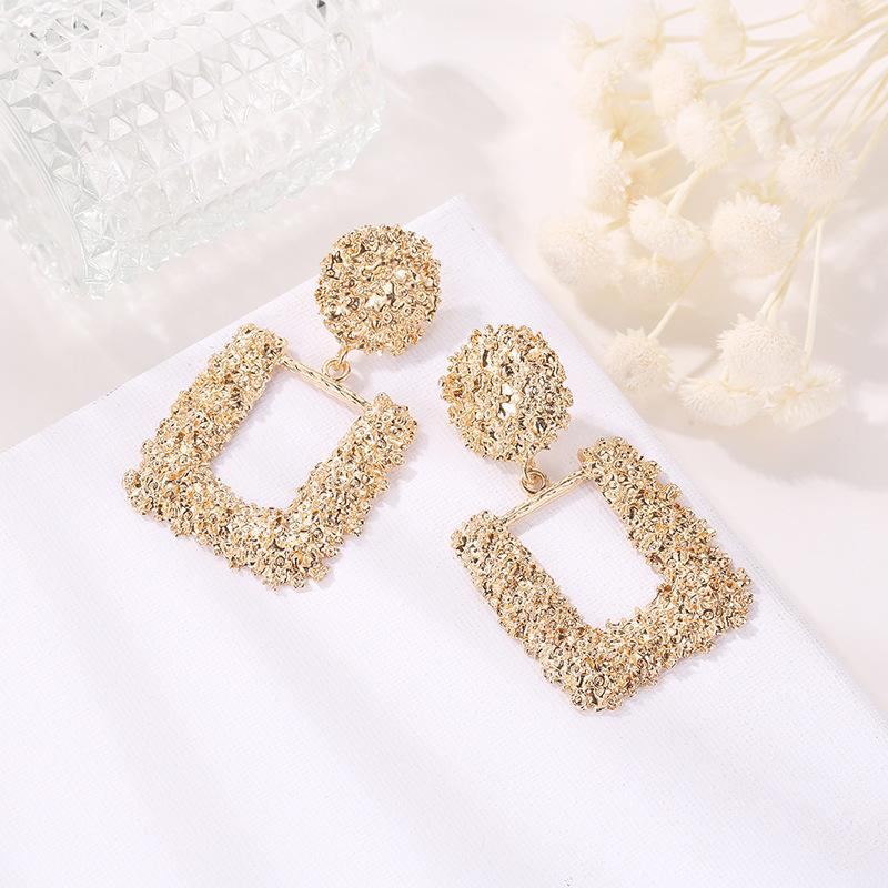 Personality exaggerated geometric metal female stud earrings irregular large square earrings