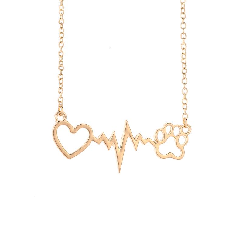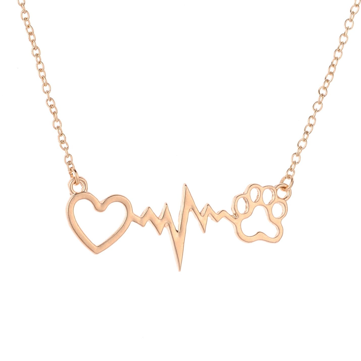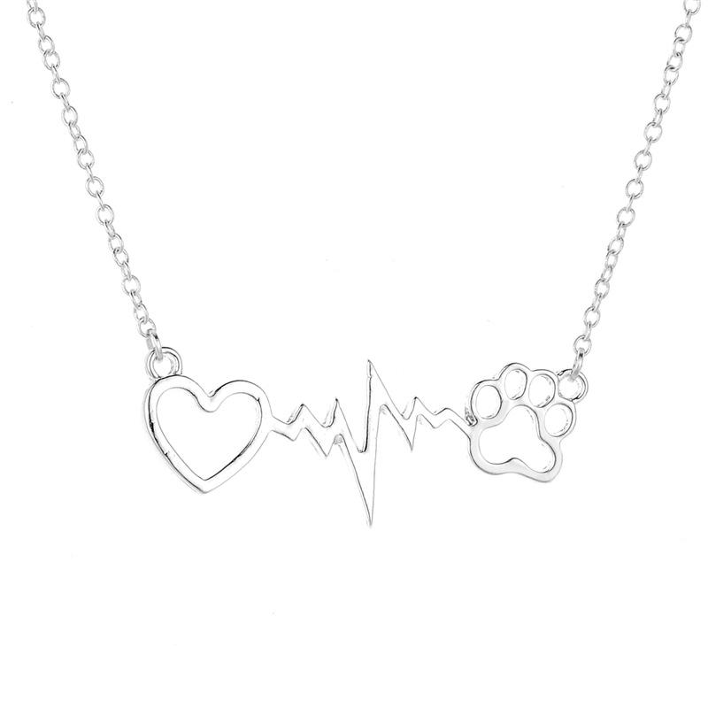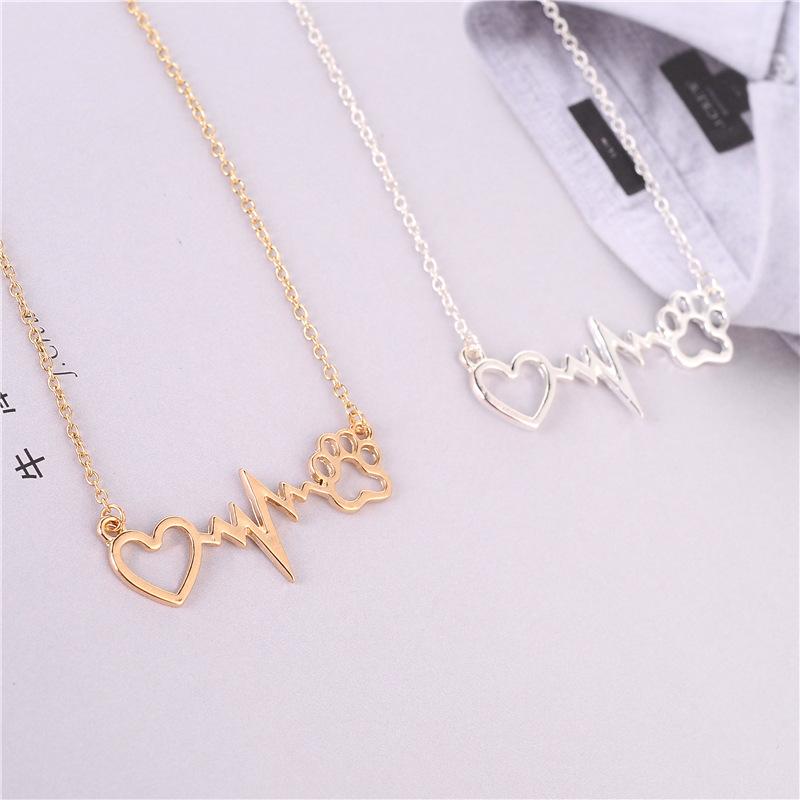 Personality Fashion Love Bear Paw Dog Paw Dog Footprint Necklace ECG Heartbeat Clavicle Chain