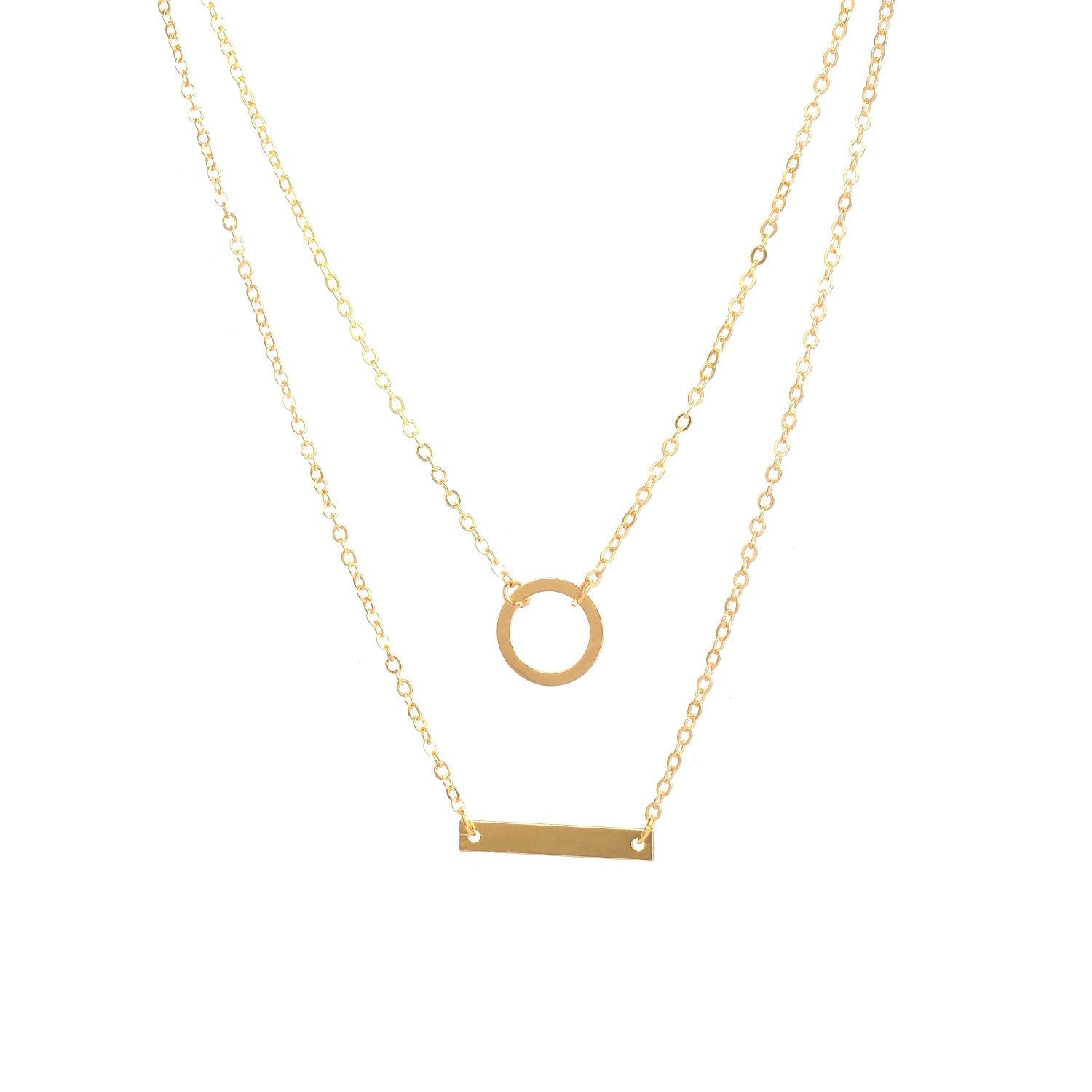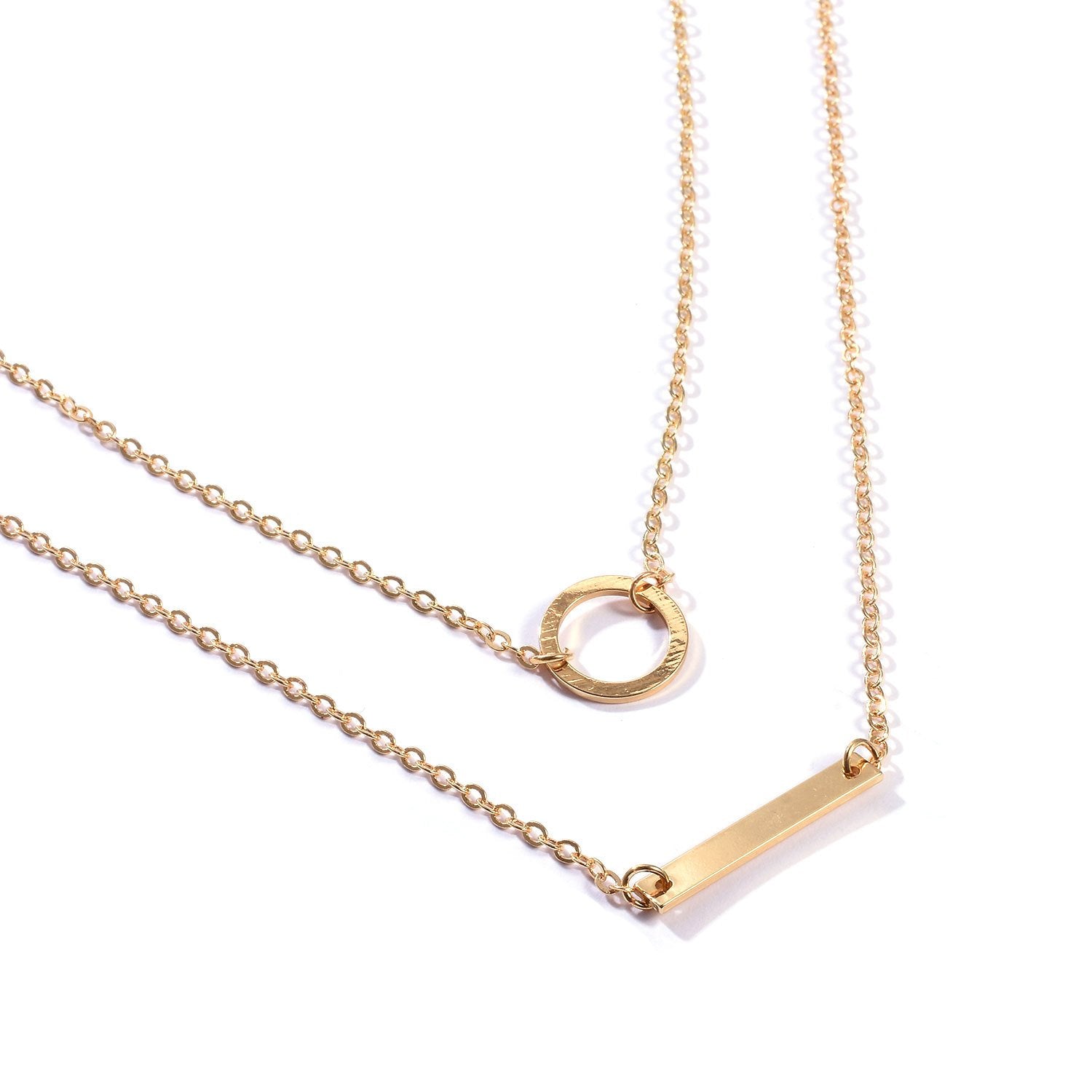 Popular Necklace Ring One Word Metal Rod Circle Necklace Female Thin Chain Clavicle Chain