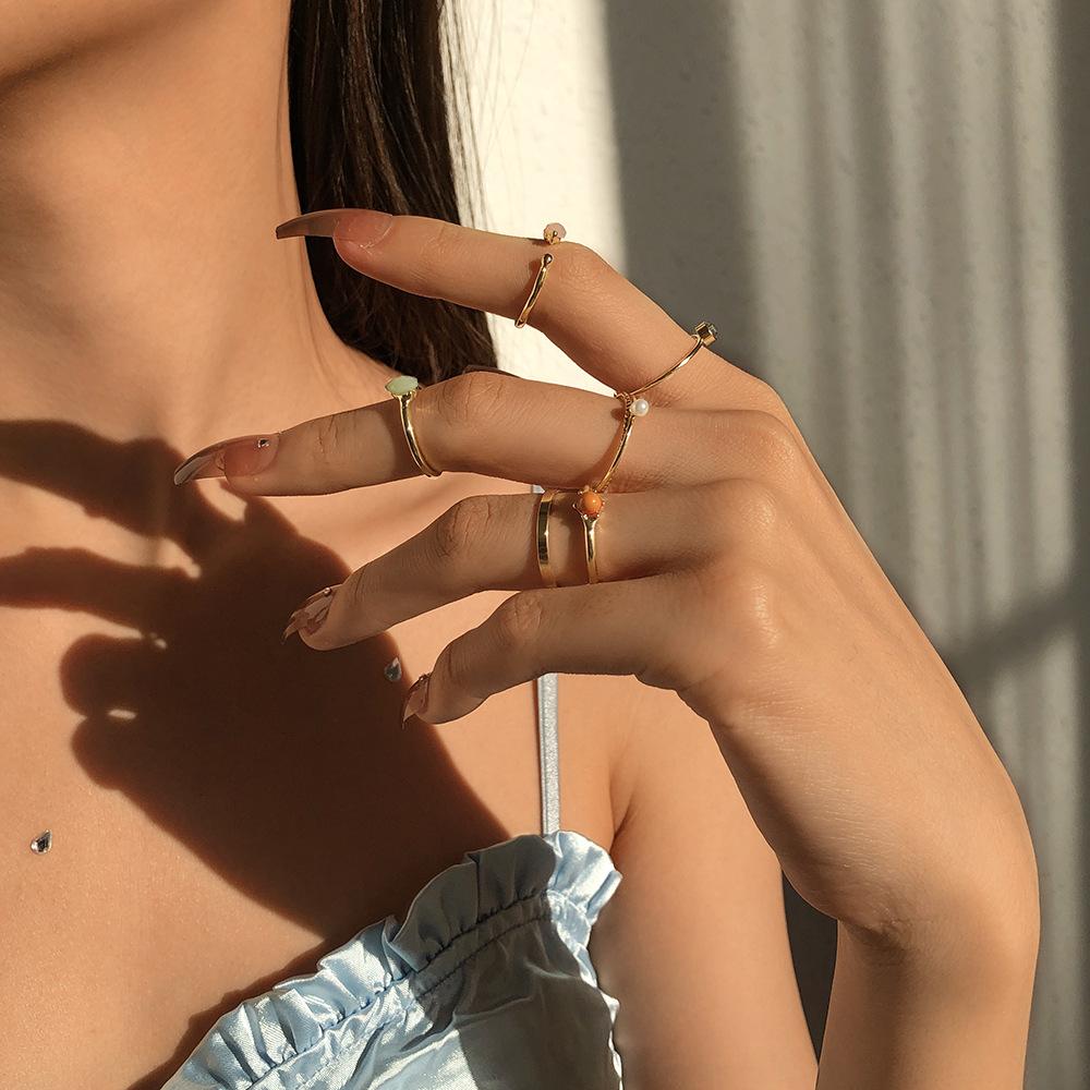 R664 Popular Hand Jewelry Niche Indifferent Temperament Ring Diamond Pearl Geometric Ring Set