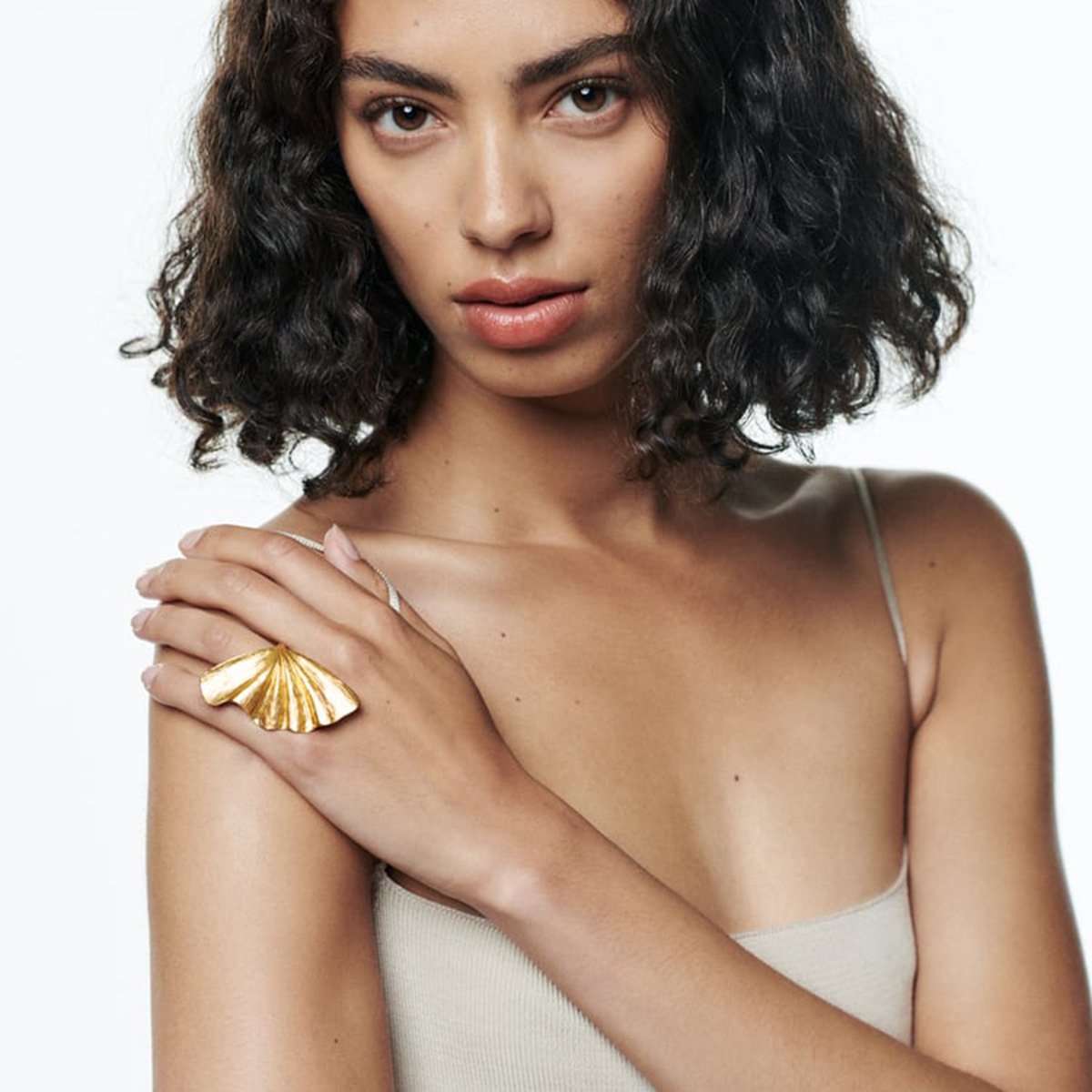 R8 creative geometric maple leaf ring female metal personality simple irregular exaggerated fan-shaped jewelry