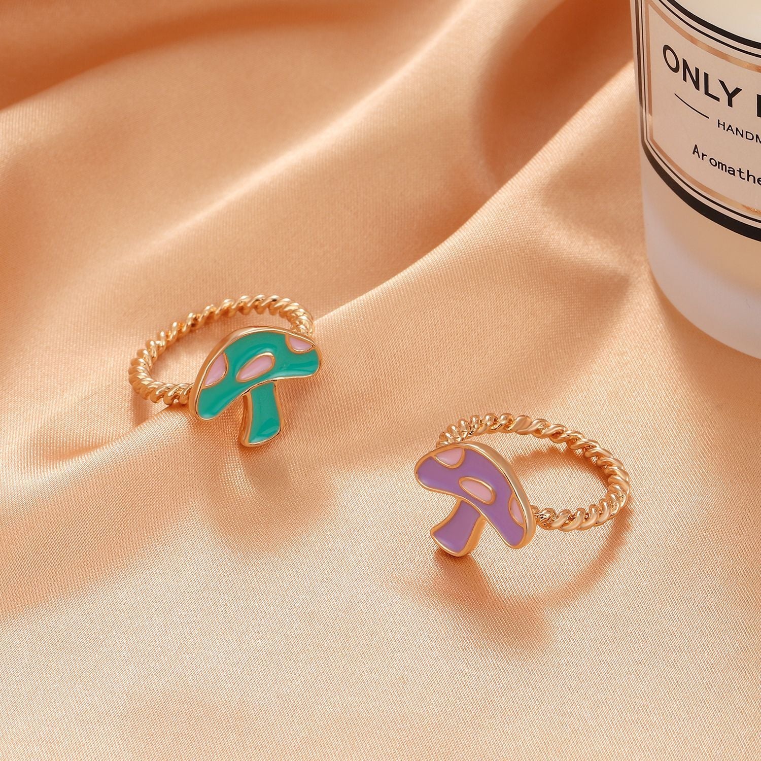 Retro Childlike Red Strawberry Ring Female Fashion Creative Geometric Metal Drip Oil Red Mushroom Index Finger Ring
