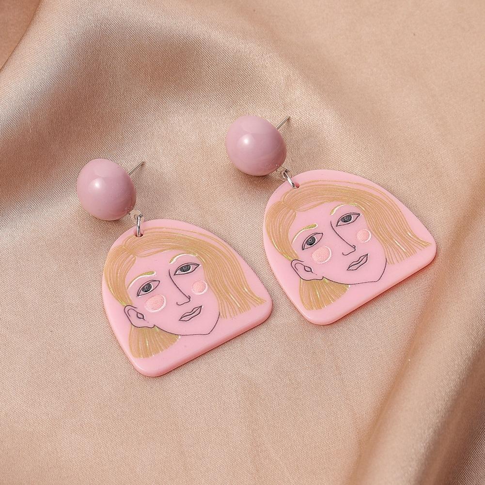 Retro Pink Beauty Acrylic Graffiti Earrings Cute Personality Geometric Design Touching Face Earrings