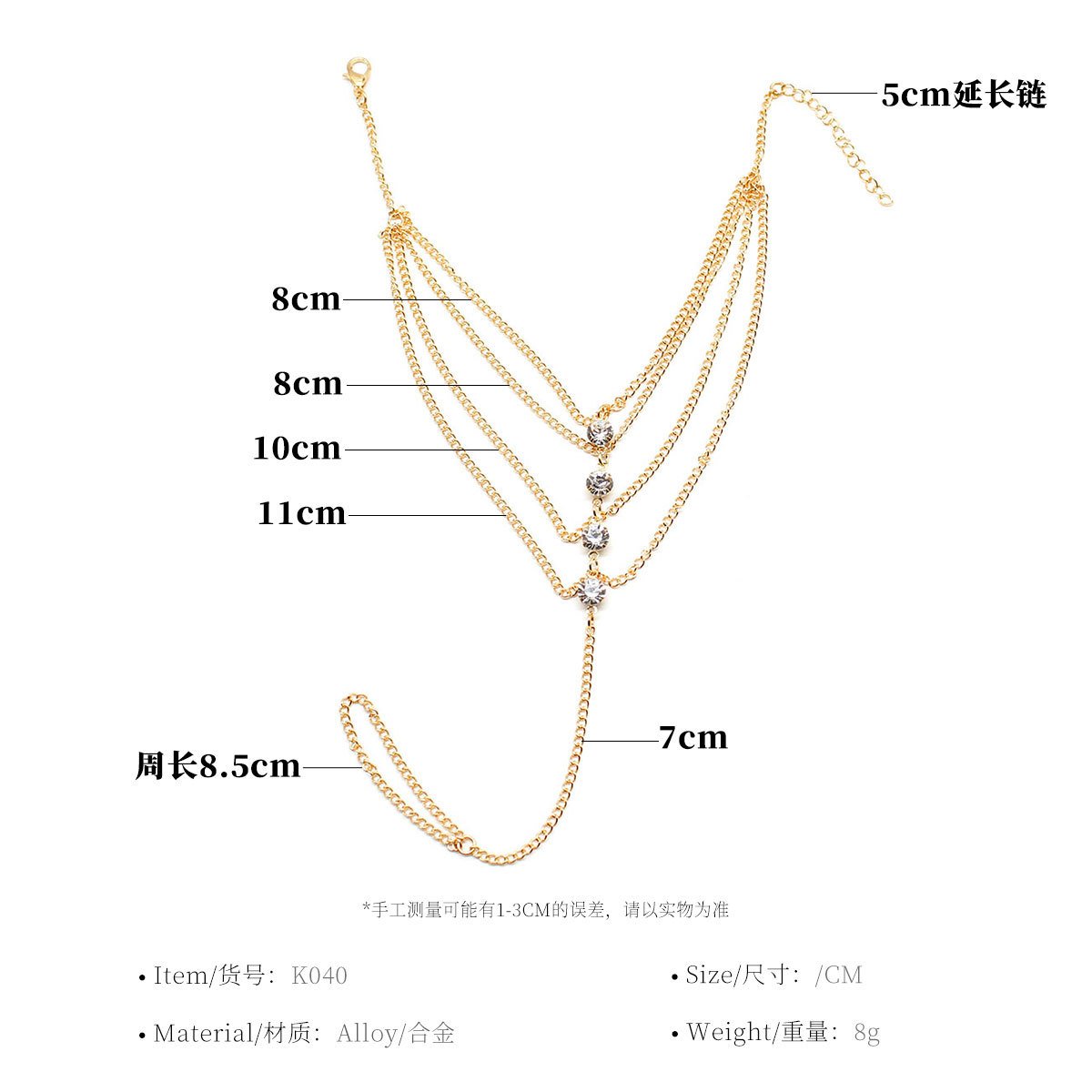 Rhinestone Decorated Layered Anklet Boutique Ladies Spring Jewelry
