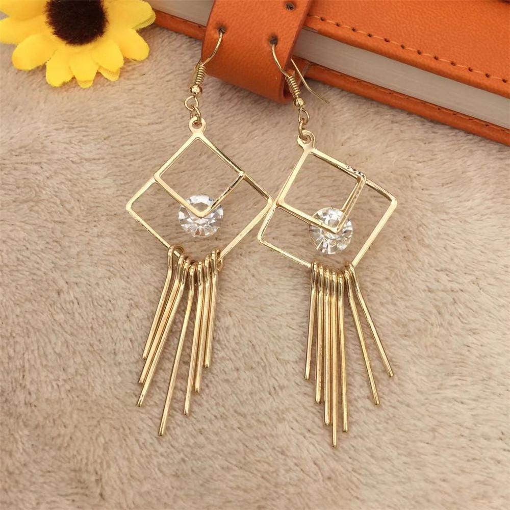 Rhombus Quadrilateral Tassel Earrings Clip Drill Earrings Ethnic Earrings Popular Jewelry Indian Shrimp