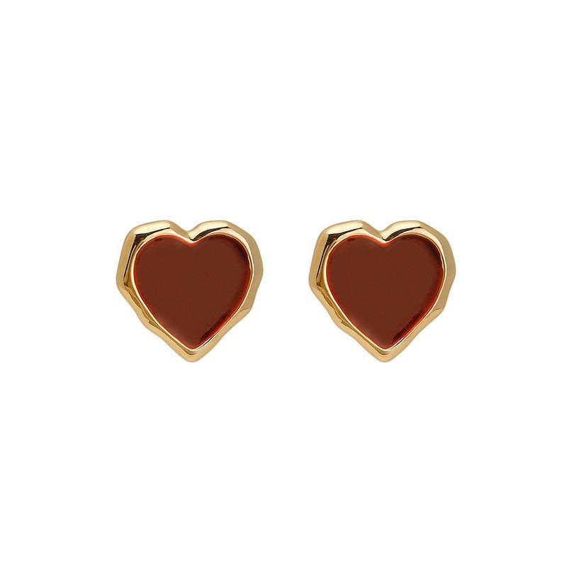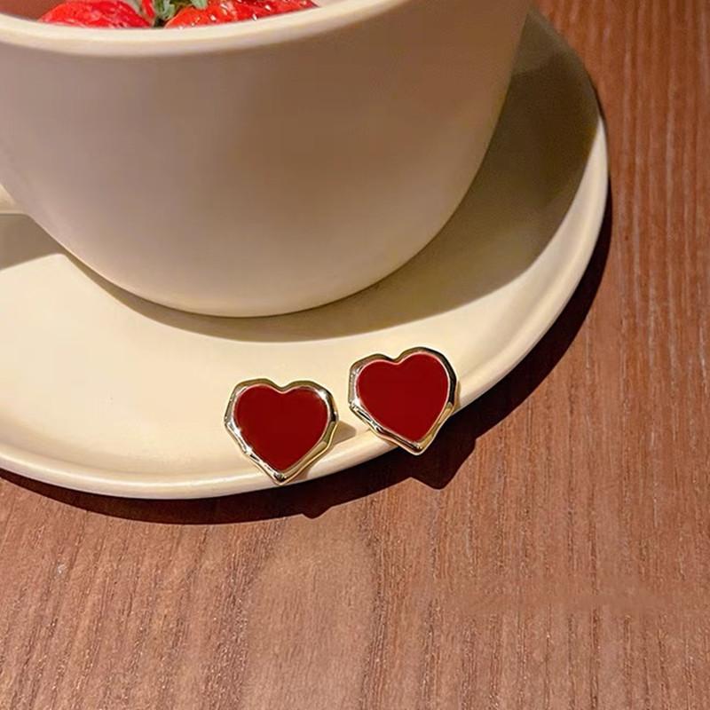 S925 Silver Needle Wine Red Love Drip Oil Earrings Women's Autumn and Winter Fashionable Temperament High-end New Year's Small Earrings
